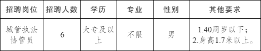 | 为进一步加强城市综合管理工作,根据工作需要,现面向社会公开招聘城管执法协管员,现将有关事项公布如下: 一、招聘原则 公开报名、平等竞争、择优录用 二、招聘岗位及人数 ![]() 三、报名条件 (一)拥护党的领导,政治素质好,有一定的政策理论水平;遵纪守法、品行端正;志愿在基层工作,具有较强的吃苦精神和爱岗敬业精神。 (二)有一定的组织协调能力、矛盾调处能力、社会实践能力和较强的组织纪律观念。 (三)热爱城市综合管理工作,具有较强的工作责任心和组织纪律性,能够保守工作秘密。能够胜任一线城市综合管理工作,吃苦耐劳,适应外勤、不定时加班或倒班等需要。 (四)身体健康,无明显生理缺陷、无传染性疾病、无纹身和不良嗜好,无违法犯罪、失信记录。 (五)退伍军人、具有法律专业学历、荣获单位先进个人表彰等人员同等条件下优先录用。 (六)具有下列情形之一的,不予招聘录用: 1.正在接受或受过刑事处罚的; 2.曾被开除国家机关、企事业单位公职的; 3.涉嫌违纪违法正在接受审查尚未做出结论的; 4.受到党纪处分未满影响期限的; 5.有参加邪教组织或非法活动等其他违纪违法行为的; 6.有失信行为的; 7.法律规定不得录用的其他情形人员。 四、招聘程序 (一)发布招聘公告 按照“事先告知、公开透明”的原则,在报名前向社会公开发布招聘公告。 公告发布:微信公众号【钟吾人才集团】。 (二)报名和资格审查 本次招聘报名、资格审查等工作均通过现场方式进行。报名受理、资格审查工作由宿迁市钟吾人才科技集团有限公司(以下简称钟吾人才集团)组织实施。 1.报名时间:2025年7月29日至8月1日(工作日期间报名,上午9:00-12:00,下午2:30-5:30)。 2.报名地点:宿迁市知识产权服务业集聚区(宿迁市洪泽湖路732号);联系电话:0527-80977981。 3.报名材料(照片及各类材料复印件不退): (1)本人有效期内的二代身份证、户口薄、毕业证书、机动车驾驶证(如有)原件及复印件各2份; (2)近期2寸免冠彩色照片2张; (3)本人认为有必要提供的其他证书或材料(包括但不限于退伍证等原件、复印件); (4)报名表(附件)。 4.资格审查:对应聘人员的户籍、年龄、学历和报考证件等进行资格审查,资格审查未通过的,不得进入之后环节。 资格审查贯穿于招聘的全过程,如在招聘过程中发现有违规违纪、材料不齐、提供虚假信息或不符合报考条件等情况,均随时取消应聘资格。 (...... 标签: 蔡集镇 招聘 城管执法协管员 公开招聘公告 城管工作 |