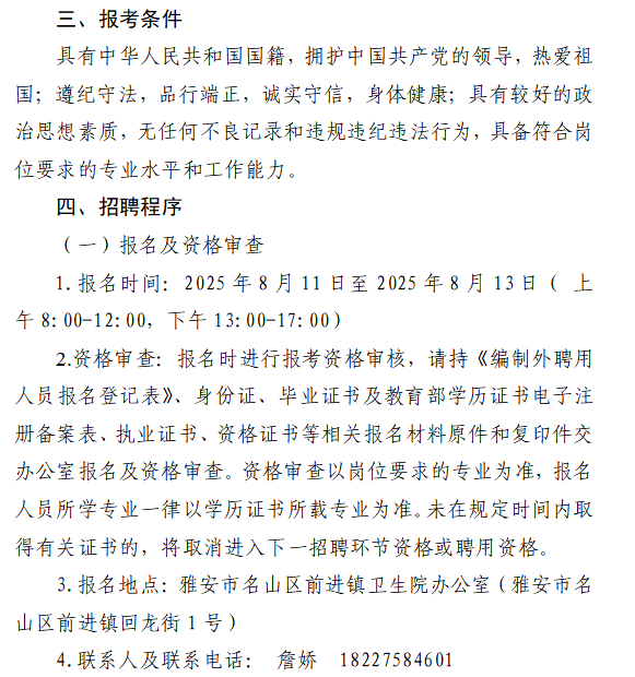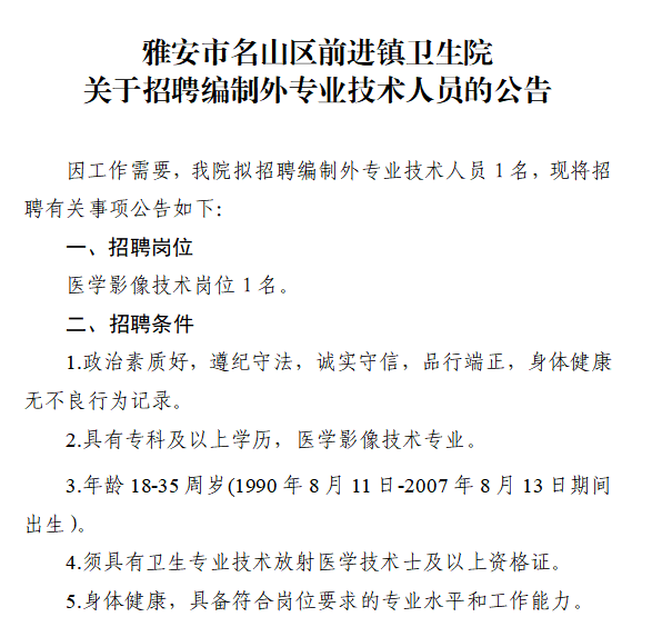 标签: 雅安市名山区 卫生院招聘 编制外专业人员 招聘公告 专业技术职位
