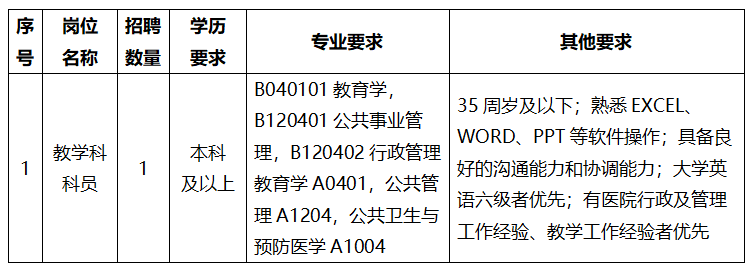 二、报名时间及方式 (一)报名时间:截止至2025年8月13日。 (二)报名方式 应聘者请将个人简历、身份证、毕业证、相关资格证等扫描件发送至人力资源部电子邮箱:hrjsiec@163.com,邮件主题请命名为:应聘岗位+姓名+学历+毕业院校+专业。 符合条件者,由我院组织考核,具体时间另行通知。 三、联系方式 地址:广东省汕头市金平区东厦北路汕头国际眼科中心 电话:0754-88393566(人力资源部冯老师、林老师) 网址:www.jsiec.org 汕头大学·香港中文大学联合汕头国际眼科中心 2025年8月4日 标签: 香港中文大学 汕头国际眼科中心 2025年招聘 教学科科员 招聘公告 |