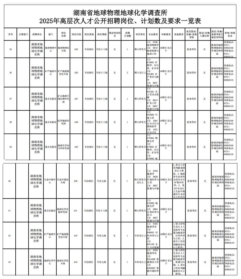 湖南省地球物理地球化学调查所2025年高层次人才招聘公告 湖南省地球物理地球化学调查所(简称“省物化所”)是湖南省地质院直属正处级公益二类事业单位,全国文明单位。拥有50余项专业资质,涵盖矿产资源勘查、地质灾害防治、测绘地理信息、国土空间规划等领域,形成全链条大地质产业体系。构建了“两站一室两中心一园”科研平台体系,包括国家级博士后工作站、省级重点实验室、湖南省地质新能源勘探开发工程技术研究中心、湖南省绿色智能勘探工程技术研究中心、湖南省博士创新工作站等高水平科研平台。累计完成公益性地质项目3000余项,探明大中型矿产地150余处,圈定找矿异常7000多处,在锰矿等战略性矿产勘查中取得重大突破,荣获湖南省科技进步一等奖、中国十大地质找矿成果奖等省部级以上奖项60余项。 作为湖南农业地质、环境地质、医学地质的开拓者,为全省土地安全利用提供全方位支撑,在资源能源保障、生态文明建设、自然资源管理支撑、防灾减灾服务均走在前列。 立足新发展阶段,省物化所以“创新驱动、物化先行、产研融合、综合发展”为理念,深化“湖南地质·透测地球”品牌建设,聚焦能源资源安全与生态文明建设,诚邀高层次人才加入,共同谱写地质事业高质量发展新篇章! 一、组织领导 在湖南省人力资源和社会保障厅指导监督下,由湖南省地质院党委统筹领导,院组织人事部具体负责招聘工作的统筹、协调、实施等事宜。院机关纪委全程参与监督。 二、2025年招聘计划 (一)招聘计划:博士研究生7人、副高级及以上职称3人。 (二)岗位名称:地球物理技术岗、矿产地质勘查技术岗、矿山地质环境治理研究岗、医学地质研究岗、地球化学动力学研究岗、生态环境技术岗、地球化学实验研究岗、矿产地质勘查技术岗、地球化学技术岗 (三)具体专业(详见《湖南省地球物理地球化学调查所2025年高层次人才公开招聘岗位、计划数及要求一览表》中专业要求) ![]() 点击查看大图(详见附件) 三、报名安排 (一)报名时间 2025年8月8日起至2025年12月31日。随到随招,招满即止。 (二)报名方式 采取现场报名或邮箱报名的方式。每人限报一个岗位,多报则取消应聘资格。 1.现场报名:请应聘人员携带报名材料到我所组织人事部门进行现场报名。 2.邮箱报名:请应聘人员将报名材料扫描或拍照,以压缩包(命名为“岗位名称+岗位代码+学历或职称层次+所学专业+姓名”)形式发送至报名专用邮箱,并与我所组织人事部确认是否收到邮件。 四、聘用待遇 考核通过,经公示无异议的,签订聘用合同,办理事业编入编手续。年收入保底30万元,海外项目薪酬体系年收入保底50万元。 五、报名地点及联系方式 报名地址:长沙市万家丽南路二段898号湖南地质大厦1109室(212路、702路、X109路公交省物化所站下车) 简历投递:577618612@qq.com、383421436@qq.com 联系人及联系电话:代璐、黎益明 0731-89862606 单位网址:http://hnsdzy.hunan.gov.cn/dzy/ysdw/whs/whssy.html 未来已来,诚邀菁英学子同行,共绘美好发展蓝图! 湖南省地球物理地球化学调查所 2025年8月8日 免费学习资源(关注可获取最新开课信息) |