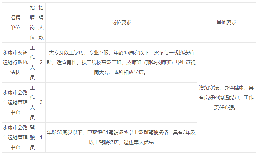 永康市交通运输局下属单位工作人员招聘公告 因工作需要,永康市交通运输局面向社会公开招聘编外工作人员6名,现将有关事项公告如下: 一、招聘岗位、人数及要求 ![]() 二、工资待遇 工资及福利待遇按照《永康市交通运输局编外人员薪酬待遇制度》执行,享五险一金。 三、招聘程序 (一)报名须知 1.报名时间:即日至9月18日止(工作日上午8:30-11:30, 下午14:00-17:30); 2.报名地点:永康市金城路1168号交通运输局4楼410室,联系电话:0579-89282029; 3.携带材料:身份证、学历证明、相关证明材料、一寸近期免冠彩照等相关报名材料。经资格初审合格,填写报名表。 4.资格审查:报名时提供的有关材料必须真实、准确、有效,凡提供虚假信息和材料,一经查实即取消考试资格。 (二)考试考核:根据报名情况采用笔试、面试等考试考核形式。 (三)体检:根据考试考核成绩从高分到低分按1:1确定体检对象,体检时间另行通知。 (四)考察:体检结束后,对体检合格人员组织政审。 (五)公示与聘用:考察结束后,对拟聘用人员名单予以公示,公示期满合格人员,按规定签订劳动合同,试用期1个月。 本公告未尽事宜,由永康市交通运输局负责解释。 永康市交通运输局 2025年9月11日 免费学习资源(关注可获取最新开课信息) |
