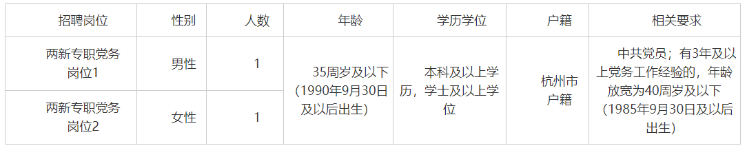 2025年杭州市西湖区民政局关于招聘两新专职党务工作者2人公告 因工作需要,西湖区民政局面向社会公开招聘两新专职党务工作者(以下简称“两新党务”),现将有关事项公告如下: 一、招聘计划 ![]() 二、招聘条件 1、严格遵守国家及地方的法律、法规,认真贯彻党的路线、方针和政策,规范执行政府的各项规章和制度,政治素质好,责任心强,热心为群众服务,具有较强的组织纪律观念,服从组织分配,恪守职业道德。 2、热心民生事业,事业心责任感强,具有良好的职业道德和履行岗位职责的能力,具有吃苦耐劳、乐于奉献、勇于创新、团队合作的精神。 3、掌握计算机应用、新媒体应用技能,具有一定的文字写作和口头表达能力。 4、具有正常履行岗位职责的身体和心理条件。 5、有下列情形之一的人员,不得报考: (1)受过刑事处罚或者涉嫌违法犯罪尚未查清的,或因违法违纪,正在接受审查尚未作出结论的; (2)曾被行政拘留、司法拘留、收容教养、收容教育或者有吸毒史的; (3)受过行政、纪律处分或有违法记录的; (4)曾因违反相关规定而被解除劳动(录用)合同的; (5)在各级人事招考中被认定有舞弊等严重违反考试录用纪律行为的; (6)曾参加过邪教组织或活动的; (7)被依法列为失信联合惩戒对象的; (8)法律、法规和相关政策规定不得被录用的其他情形的。 三、招聘流程及要求 本次招聘按照公开、平等、竞争、择优的原则,由报考人员自愿报名,通过线下报名、资格审查、笔试、面试、体检、考察、公示和录用等程序进行。 (一)报名时间 2025年9月25日9时—2025年9月26日17时 (二)报名方式及资格审查 报名方式:采取线下报名方式,请在报名时间内,携带报名表(附件1)及身份证、户口本、学历证书、中共党员证明等相关材料原件和复印件。 报名地点:杭州市西湖区文一西路858号东楼547室 报名时需要准备的资料说明: ①本人有效期内二代身份证,户口本首页及本人页(无户口本人员须由户口所在地派出所出具有效期内的户籍证明),集体户口需提供加盖公章的户口本首页及个人页; ②国家承认的学历、学位证书。学历、学位证书正在办理中的人员须提供学校相关证明、学信网《教育部学历证书电子注册备案表》《中国高等教育学位在线验证报告》(2025年普通高校应届毕业生,须在2025年8月31日前取得并提供毕业证书);国(境)外学历须提供教育部(中国)留学服务中心出具的国(境)外学历、学位认证书。 ③须提供《中共党员证明》(附件2);有3年及以上党务工作经验的须提供在地党委(党总支)盖章的工作年限证明(附件3)。 (三)笔试 笔试时间、地点、要求等另行通知。未按笔试通知的时间、地点参加面试的视为放弃。 笔试采取闭卷方式,满分100分,合格分为60分。笔试成绩按照从高分至低分以该岗位招聘人数1:3的人数比例确定面试人员,人数不足相应比例的,按实际上线人数进入面试。入围面试人员名单将在西湖区门户网站进行公布,不再另行告知。 (四)面试 面试时间、地点、要求等另行通知。未按面试通知的时间、地点参加面试的视为放弃,不再递补。 面试为结构化面试,满分100分,合格分为60分。面试成绩不合格者,不列入体检对象。 面试结束后,根据综合成绩(按照笔试成绩50%和面试成绩50%的比例计算综合成绩,综合成绩精确到小数点后3位)从高分到低分排序,按岗位招聘人数1:1的人数比例确定体检对象。综合成绩相同的,笔试成绩高的排名在前;综合成绩低于60分的不列入体检对象。 综合成绩及入围体检人员名单将在西湖区门户网站进行公布,不再另行告知。 (五)体检和考察 体检和考察内容、标准参照杭州市现行公务员录用体检、考察有关规定执行(如体检、考察工作实施前,国家、省、市出台新规定的,按新规定执行)。 体检在指定的医院进行。报考人员未按规定时间、地点参加体检的,视作放弃体检。体检时间和地点另行通知,费用自理。 考察对象在体检合格人员中确定,由招聘单位负责组织实施考察,着重了解考察对象的思想政治素质、能力素质、遵纪守法情况、道德品质修养以及与招聘条件是否相符等情况,并出具考察意见。 体检不合格(或放弃)的,考察不合格(或放弃、考察中发现不符合招聘条件)的,具体由招聘单位决定是否依次递补。 (六)公示和录用 考察合格的拟录用人员名单在西湖区门户网站公示7天。公示期满后,没有反映问题或反映的问题经查实不影响录用的。由招聘单位按规定办理录用手续,签订劳动(聘用)合同,并实行试用期三个月,在试用期内被证明不符合录用条件的,不予录用。试用期满考核不合格的,录用单位可解除劳动合同。被录用人员为西湖区民政局编外合同制工作人员性质,按规定签订劳务派遣合同,薪酬待遇参照杭州市西湖区专职社工有关工资福利待遇。 对反映有影响录用问题并查有实据的,不予录用;对反映的问题一时难以查实的,暂缓录用,待查清后再决定是否录用。 确定录用的人员应及时处理好与原工作单位的人事劳动关系,在规定的时间内报到,逾期不能报到的,取消录用资格。 (七)相关事项说明 1、招聘过程中如出现政策变化、突发事件等,可对有关工作安排进行调整,请报考人员理解、支持和配合。 2、报考人员应对本人所填报资料的真实性负责,诚实应聘。对伪造、涂改证件证明,或以其他不正当手段获取报考资格、在考