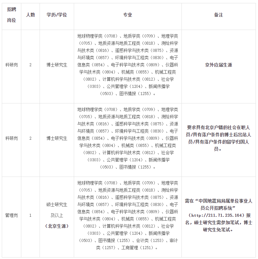 中国地震局地震预测研究所2026年度招聘公告 一、单位简介 中国地震局地震预测研究所(以下简称研究所)成立于1980年,其前身是国家地震局分析预报中心,2004年中国地震局直属科研机构改革后变更为现名。研究所是以地震预测理论方法为科研主攻方向,以地震监测、地震预测理论方法与观测技术为主要研究领域的国家级综合研究机构,是国家防震减灾科技创新的战略力量。 二、机构设置 研究所内设9个业务部门和6个职能部门。业务部门包括地震中长期预测研究室、地震短临预测研究室、地震数值预测与风险预测研究室、地震预测新技术应用研究室、地震监测预测系统评估研究室、信息中心、地震社会学与地震对策研究室、成果转化应用中心、地震预测重点实验室;职能部门包括办公室、科研管理部、人力资源部(离退休干部办公室)、规划财务部、党群工作办公室、纪检室。 三、业务范围 研究所针对地震预测的基本科学问题开展基础研究和应用基础研究。针对地震中长期预测、地震短临预测、地震数值预测与风险预测、地震预测新技术应用、地震监测预测系统评估设计、地震社会学与地震对策等,开展应用性、先导性、系统性研究,促进科技成果转化应用,支撑和引领地震预报业务的发展。坚持“科研任务从业务中来,研究成果回到业务中去”,主动承担长中短临地震攻关任务。强化和业务中心等单位的联系,建立与业务中心、省局的“前店后厂”工作格局,开展联合攻关。发挥好汇聚全国科技力量服务地震预测的平台作用,引进新理论新方法,结合实际开展地震预报研究。近年来,研究所聚焦国家地震科技创新工程“解剖地震”计划开展研究工作,牵头开展全国地震重点监视防御区确定、全国地震形势跟踪研究、地震人工智能应用研究、“高分”遥感地震监测与应急应用示范系统建设等,积极参与中国地震科学实验场建设。 四、科研成果 自2004年以来,研究所承担国家发展改革委、科技部、国家自然科学基金委员会、国防科工委(局)支持的科研项目172项,获国家科技进步奖一等奖1项、国家科学进步二等奖2项、国家自然科学二等奖1项;省部级奖励60项。研究所科技人员以第一作者第一署名单位发表研究论文1500余篇,其中SCI收录论文近600篇;获国家发明专利33项、实用新型专利28项;国家标准7项,行业标准32项。 五、人才队伍 研究所现有在职职工212人,现有科研人员167人,其中正高级职称42人,副高级职称88人,具有博士学位136人。拥有一批年轻的学科带头人,杰出青年科学基金获得者1人,亚太经合组织地震科学合作项目副主席1名,享受国务院政府特殊津贴10人;现有中国地震局创新团队5个,中国地震局领军人才5人、骨干人才4人、青年人才8人,形成了一支极具特色的高水平基础研究与应用研究相结合的队伍。 研究所建有应急管理部地震预测与风险评估重点实验室、中国地震局地震预测重点实验室、“高分”遥感地震行业中心和2个地震科学实验基地,与中国工程物理研究院共建“高压物理与地震科技联合实验室”,与中国科学院大学、南方科技大学共建“地震数值预测联合实验室”,与中国地震局地球物理研究所、亚美尼亚地球物理与工程地震学研究所共建“地震观测与模拟国际联合实验室”,与美国南加州地震科学中心(SCEC)合作建设“地震可预测性研究国际合作(CSEP)中国中心”;由院士特聘研究员牵头组建院士工作室。 研究所现有地球物理学一级学科硕士学位授权点、构造地质学二级学科硕士学位授权点和资源与环境专业硕士学位授权点。多年来不断加大研究生培养规模和力度,设立了博士后科研工作站,与高校及科研院所联合加强师资队伍建设,鼓励和支持国内外优秀学生来所学习深造。 六、国际交流与合作 研究所承担国际地球科学计划(IGCP)1项,科技部国家重点研发计划政府间合作项目2项(中美、中缅),人社部外国专家项目5项,外交部亚合项目1项。牵头国际大科学计划“深时数字地球(Deep-time Digital Earth)”地震工作组工作,参与亚太空间合作组织(APSCO)地震二期项目,与英国、法国科研机构合作开展中欧龙计划(Dragon-6)。 研究所在国际地震科技领域积极发挥作用,有6人在国际组织任职,4人在国际期刊任职。通过人才引进和项目合作,在国际大地测量与地球物理学联合会(IUGG)、亚太经合组织地震科学国际合作组织(ACES)、地震可预测性合作研究(CSEP)等国际组织、国际合作计划中发挥了重要作用。 研究所与国外若干单位签订了合作谅解备忘录(MOU),与包括美国南加州地震中心(SCEC)、俄罗斯科学院大地物理研究所(IPE RAS)、埃及天文和地球物理研究所(NRIAG)、俄罗斯科学院地震预报理论与数学地球物理研究所(IEPT RAS)、阿尔及利亚天文、天体物理与地球物理研究中心(CRAAG)、亚美尼亚地球物理与工程地震学研究所(IGES)、意大利国家地球物理与火山研究所巴勒莫分部(INGV-PA)、日本京都大学防灾研究所(DPRI-KU)、意大利国家地球物理与火山研究所 (INGV)、伊朗霍尔木兹甘大学海啸与地震研究中心、泰国朱拉隆功大学工程学院在内的国际地学研究机构建立了长期稳定的合作关系。 七、人才招聘 根据研究所事业发展和工作需要,依据《事业单位公开招聘人员暂行规定》和《中国地震局地震预测研究所公开招聘管理办法》,现发布2026年招聘公告,真诚