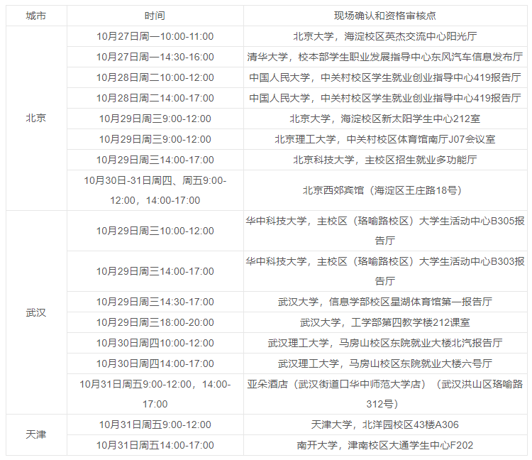 广州市南沙区事业单位2025年第一批高校校园招聘公告(北京、武汉设考点) 广州南沙地处粤港澳大湾区几何中心,面积803平方公里。南沙是广东省唯一国家级新区、广东自贸试验区面积最大片区、粤港澳全面合作示范区。2022年6月,国务院印发《广州南沙深化面向世界的粤港澳全面合作总体方案》,明确提出将南沙打造成为立足湾区、协同港澳、面向世界的重大战略性平台,南沙在国家发展大局中的战略地位不断提升。 为贯彻落实广东省“百万英才汇南粤”的行动计划部署,根据广东省、广州市事业单位招聘有关文件精神,结合南沙区实际,面向高校公开招聘40名事业单位工作人员。现将有关事项公告如下: 一、招聘岗位、人数、范围 (一)招聘岗位及人数:详见《广州市南沙区事业单位2025年第一批高校校园招聘岗位表(北京考点)》《广州市南沙区事业单位2025年第一批高校校园招聘岗位表(武汉考点)》(附件1、2)。 (二)招聘对象:2026届普通高等院校毕业生(非在职,且2026年1月1日至2026年9月30日期间取得毕业证、学位证的毕业生)。 港澳居民毕业生符合《粤港澳大湾区(内地)事业单位公开招聘港澳居民管理办法(试行)》和公告要求的可报考对应岗位。 二、应聘人员的基本条件 (一)具有中华人民共和国国籍。 (二)遵守宪法和法律。 (三)拥护中国共产党领导和社会主义制度。 (四)具有良好的政治素质和道德品行,适应岗位要求的身体条件。 (五)具备岗位要求的学历及相关资格条件,专业名称及代码按照《广东省2026年考试录用公务员专业参考目录》执行。 (六)年龄18周岁以上,38周岁以下;具有博士研究生学历的放宽至45周岁。年龄计算时间截至报名首日。 (七)法律法规规定的其他条件。 (八)有下列情形之一的,不得报名: 1.受过刑事处罚的; 2.被开除中国共产党党籍的; 3.被依法列为失信联合惩戒对象的; 4.聘用后即构成回避关系的; 5.现役军人,在读的全日制非2026年毕业生; 6.法律、法规规定的其他情形。 本条所规定的处分期限计算截至报名首日。 三、招聘程序 (一)报名 本次招聘采取网上报名与现场确认同步进行的方式。考生可在任一报名地点报考北京、武汉任一岗位(限报1个),并在岗位相应城市参加考试。 1.网上报名 2025年10月26日上午9:00至10月31日下午5:00,考生登录报名网站https://www.qgsydw.com,按照网上提示方法填写个人资料进行网络报名。网络报名流程为:访问报考系统—注册账号—填报岗位相关信息—填写报名资料—上传照片—报名确认—自行打印报名表。 网络报名成功的考生须在规定时间内参加现场确认和资格审核。现场确认,且资格审核通过后,方可参加考试。未在规定时间内参加现场确认和资格审核的,视为自动放弃报考资格。 2.现场宣讲 本次招聘将在北京大学、清华大学、中国人民大学、华中科技大学、武汉大学、武汉理工大学等高校举行系列宣讲活动,宣讲会接受考生现场报名、现场确认和资格审核。高校宣讲时间和地点如下: 北京大学宣讲会:10月27日周一上午10:00-11:00,海淀校区英杰交流中心阳光厅; 清华大学宣讲会:10月27日周一下午2:30-4:00,校本部学生职业发展指导中心东风汽车信息发布厅; 中国人民大学宣讲会:10月28日周二上午10:00-11:00,中关村校区,学生就业创业指导中心419报告厅; 华中科技大学宣讲会:10月29日周三上午10:00-11:00,主校区(珞喻路校区),大学生活动中心B305报告厅; 武汉大学宣讲会:10月29日周三下午2:30-4:00,信息学部校区,星湖体育馆第一报告厅; 武汉理工大学宣讲会:10月30日周四上午10:00-11:00,马房山校区,东院就业大楼北汽报告厅。 3.现场确认和资格审核 本次招聘在以下地点设现场确认和资格审核点。 ![]() 上述时间、地点如有变化,将在广州市南沙区人民政府门户网站(http://www.gzns.gov.cn)另行补充通知。 (1)所有网上报名考生本人须在规定的时间内选择一个现场确认点进行现场确认和资格审核,未在规定时间内参加现场确认和资格审核者视为自动放弃报考资格。现场确认点也接受考生现场报名和资格审核。 (2)现场确认和现场资格审核材料包括: 国内普通高等院校2026届毕业生需提供:①报名系统下载打印的报名表;②有效居民身份证;③学生证;④载明专业名称及学位信息的就业协议书或就业推荐表(如果部分高校尚未下发就业协议书或就业推荐表,可提供经教务处盖章的所学专业、课程成绩单、可授予的学位及名称);⑤教育部学籍在线验证报告(学信网下载打印);⑥岗位要求提供的其它证书。 在国(境)外学习并将于2026年取得的学历学位证书的人员,须在报名时出具有关证明材料(成绩单、在读证明等翻译材料)。 上述材料需提供原件(核对)、复印件(留存)。 4.注意事项 (1)考生的所学专业应与其所报岗位要求的学历、专业资格条件相符,专业代码要求一致。专业名称及代码依照《广东省2026年考试录用公务员专业参考目录》执行,其中普通高等院校研究生可以其本科专业报名,但其本科院校须为普通高等院校,并取得学历及学士学位。专业名称须与《岗位表》《广东省2026年考试录用公务员专业参考目录》专业名称完全一致,专业名称后以括号等形式列出的培养方向不得作为报考专业的依据。所学专业未列入专业目录(无对应专业代码)的,可选择专业目录中的相近专业报考,所学专业必修课程须与报考岗位要求专业的主要