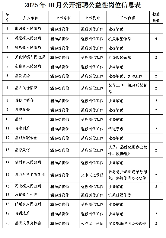 | 根据《河南省财政厅河南省人力资源和社会保障厅关于印发河南省就业补助资金管理办法的通知》(豫财社〔2024〕194号)、《关于印发河南省公益性岗位管理办法的通知》(豫人社办〔2020〕23号)规定,鹿邑县县直及乡镇机关事业单位面向就业困难人员公开招聘公益性岗位。现公告如下: 一、招聘单位、岗位人数及条件 县直及乡镇机关事业招聘单位、岗位人数及条件等相关信息,详见(《2025年10月公开招聘公益性岗位信息表》)。 二、招聘方式 本次招聘针对就业困难群体,采取由用人单位面试考察的方式。 三、招聘对象和条件 应聘人员必须具备的基本条件: (一)公益性岗位安置对象为就业困难人员(以河南省互联网+就业系统认定为准): 1.城镇零就业家庭成员; 2.距法定退休年龄10年以内的登记失业人员; 3.登记失业半年以上的长期失业人员; 4.正在享受城镇最低生活保障待遇的家庭、当年经县级以上总工会认定的城镇特困职工家庭、残疾人家庭、农村建档立卡贫困户等家庭中毕业两年内未就业的高校毕业生(含技师学院高级工班、预备技师班和特殊教育院校职业教育类毕业生)、在校期间曾享受助学贷款的毕业两年内未就业的高校毕业生; 5.就业困难的被征地农民; 6.失业的残疾人、城镇复员转业军人、县级以上劳动模范、军烈属和需要抚养未成年人的单亲家庭成员。 (二)遵守宪法和法律; (三)具有良好的政治素质和道德品行; (四)具有适应岗位要求的身体条件; 四、信息发布 10月24?日,鹿邑县县直及乡镇机关事业单位公开招聘公益性岗位公告在鹿邑县人力资源和社会保障局微信公众号进行发布。未能及时关注而造成的后果,由本人承担。 五、招聘程序 本次招聘实行现场报名。符合公益岗应聘条件人员携带身份证(大学生公益岗需携带毕业证)到鹿邑县行政服务大厅二楼人社专区就业服务4号窗口现场报名。每名应聘人员限报一个岗位,提供虚假信息扰乱报名秩序的,取消报考资格。 (一)提交报名申请 报名时间为2025年10月27日9:00至10月29日17:00。报名人员现场按要求如实填写、提交报名申请。 报名前,报名人员应确保所填报的报名申请信息全面、真实、准确、完整、有效。因提供信息不准确或不符合岗位应聘条件,导致影响应聘的,由本人承担。 (二)资格审查 报名结束后由鹿邑县人力资源和社会保障局就业促进股对报名情况进行资格审查。审查内容包括:就业困难人员认定、工商登记信息、就业信息等。并在鹿邑县人力资源和社会保障局微信公众号进行3个工作日的公示。 (三)组织面试 用人单位应于面试开始前把面试方案交鹿邑县就业促进股备案。用人单位严格按照面试方案组织人员开展面试考察,确定聘用人选。 (四)公示、聘用 根据面试考察情况确定拟聘用人员,拟聘用人员在鹿邑县人力资源和社会保障局微信公众号公示,公示期为5个工作日。对公示反映有不符合聘用条件的,经查实,取消其拟聘人选资格。 聘用人员由公益性岗位管理部门备案后办理相关手续,聘用双方签订聘用协议。被聘人员无正当理由逾期不报到的,视其放弃聘用资格。 ?六、用工期限 公益性岗位协议期限最长为3年,严格执行三年退出机制。距法定退休年龄不足5年的就业困难人员可延长至法定退休年龄。三年内用人单位和公益性岗位双方可自行协商解除聘用协议。 七、咨询电话 就业促进股: 0394-7201839 鹿邑县人力资源和社会保障局 2025年10月24日 ![]() 标签: 鹿邑县 2025年10月 公益性岗位招聘 县直招聘 乡镇招聘 公开招聘公告 |