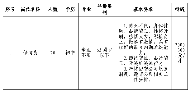 | 南昌城尚投企业管理有限公司是2008年组建的国有企业,注册资本金11050万,是安义县城市建设投资发展集团成员,主要从事成品油零售,烟草制品零售,食品销售,商业综合体管理服务,物业管理,停车场服务,住房租赁,工程管理服务,餐饮管理等服务。 现面向社会招聘临聘人员,具体如下: 一、招聘岗位 ![]() 二、资格条件 1.具有中华人民共和国国籍,拥护中华人民共和国宪法,拥护中国共产党领1.具有中华人民共和国国籍,拥护中华人民共和国宪法,拥护中国共产党领导和社会主义制度,具有良好的政治素质和道德品行。 2.男女不限,65周岁以内,1960年10月24日之后出生,身体健康,无重大疾病史。 3.具有良好的职业道德和团队合作精神,能够吃苦耐劳,服从管理; 4.有一定的保洁工作经验者优先考虑,但我们也欢迎愿意学习、积极进取的新手加入; 5.能够熟练使用保洁工具和设备,掌握基本的保洁知识和技能; 6.具备良好的沟通能力和服务意识,能够与居民保持良好的互动关系。 7.政治合格,品行良好,遵纪守法,无犯罪记录。 三、招聘程序 本次公开招聘采取现场报名。招聘工作按照报名、现场资格审查(面试)、体检、聘用等程序进行。 (一)报名 1.报名方式:本次招聘采取现场报名方式进行,应聘者携带身份证,个人简历前往指定地点报名。 2.报名地点:安义县凤凰西路城投集团内。 3.联系人:余经理,电话:13907088520。 (二)现场资格审查(面试) 应聘者请持本人身份证等在报名现场进行资格审查。资格审查结束后进行现场面试 (三)体检 ? 组织拟录用人选到指定体检机构体检,对健康体检有问题的,不予录用,并视情况进行递补。 (四)聘用及相关待遇 1.体检通过后,办理相关入职聘用手续,聘用人员由江西省职教人才发展有限公司提供人事委托服务。 2.相关待遇:每天上班8小时,每月薪资2000-300元,工作地点主要位于安义县县人民医院(老院区)。 四、其他事项 (一)资格审查工作贯穿于公开招聘工作全过程。在任何阶段发现报考者不符合报考条件的,取消考试资格,所造成的后果由考生本人负责。 (二)本次招聘采取网上公示和电话联系的方式进行通知,请报考考生保持联系方式的畅通。 标签: 南昌城尚投企业管理有限公司 招聘临聘人员 保洁员 招聘简章 临聘保洁员 |