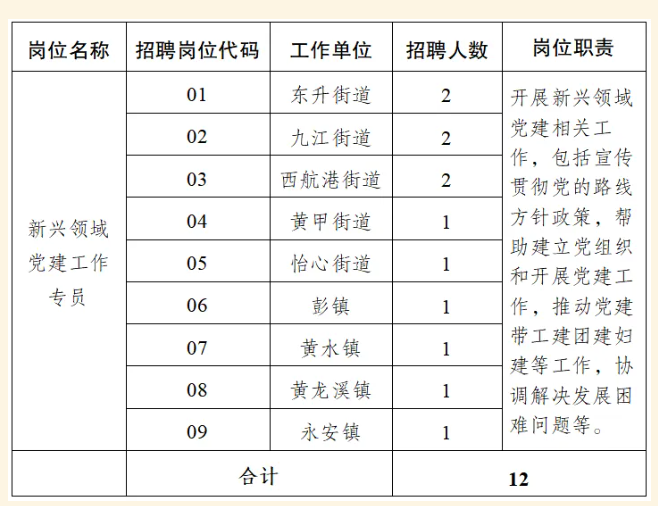 为加强新兴领域党建工作,根据工作需要,中共成都市双流区委社会工作部面向社会公开招聘新兴领域党建工作专员,现将有关事项公告如下: 一、招聘岗位及名额
