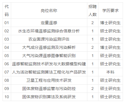 生态环境部卫星环境应用中心2025年下半年公开招聘公告 生态环境部卫星环境应用中心(简称卫星中心)是生态环境部直属事业单位,根据工作需要,拟招聘13名工作人员。现将有关事项公告如下: 一、报名基本条件 1.具有中华人民共和国国籍; 2.政治素质好,遵守宪法和法律; 3.具有良好的职业道德及良好品行,身体健康; 4.具备报考岗位所需要的学历条件,并取得与最高学历相对应的学位(于2026年8月前取得对应的学历学位); 5.具备岗位要求的专业知识和工作能力; 6.满足岗位所需的其他条件; 尚未解除法律处分或正在接受纪律审查的人员、以及刑事处罚期限未满或者涉嫌违法犯罪正在接受调查的人员不允许报名。 二、招聘岗位 共招聘10个岗位、13人,涉及生态、大气、地理、遥感、计算机等多个专业领域,岗位简表如下,详见《生态环境部卫星环境应用中心2025年下半年公开招聘岗位信息表》(附件1)。 ![]() 三、报名和资格审查 1. 报名时间:从公告发布之日起至2025年12月21日结束。 2. 报名方式:本次招聘采取网络报名的方式,不设现场报名,不接受电话或邮寄报名。应聘人员按要求填写《生态环境部卫星环境应用中心2025年下半年公开招聘报名登记表》(见附件2)以及《生态环境部卫星环境应用中心2025年下半年公开招聘报名信息汇总表》(见附件3);最多可选择两个岗位进行填报,第一志愿优先。 应聘人员须将上述登记表和报名表发送到指定电子邮箱:rsc@secmep.cn。报名邮件的主题统一命名为:第一志愿岗位代码+第二志愿岗位代码+姓名+招聘信息来源渠道;登记表与汇总表文件名统一命名为:第一志愿岗位代码+第二志愿岗位代码+姓名,作为附件发送。 3. 卫星中心对应聘人员进行资格审查,择优考试。应聘人员应如实填写有关信息,凡弄虚作假者,一经查实,取消应聘资格。 四、考试 1. 招聘考试分为笔试和面试。 2. 笔试。包括公共基础知识和专业能力测试,满分100分。笔试时间及人员名单以短信及邮件通知为准。笔试设置合格分数线,笔试成绩未达合格分数线的不得进入后续环节。 3. 面试。采用半结构化面试的方式,面试时间及人员名单以电话及邮件通知为准。 应聘人员请及时关注邮件等通知,对未进入考试各环节者,不再逐一通知。 五、考察体检 通过面试后,拟聘人员应出具最高学历学位证明、政审证明、与原单位解除劳动合同证明、近半年北京市三级医院体检报告及办理社会保险等相关材料。 六、聘用管理 本次招聘不解决北京市户口和事业编制,工作一定年限后可协助申报北京市工作居住证,对于符合北京市落户政策的博士后等人才可协助办理落户。通过考察、体检的拟聘人员,与卫星中心直接签订劳动合同,工资待遇按国家和卫星中心有关规定执行。 咨询电话:010-58311513 监督电话:010-58311314 附件:1. 2025年下半年公开招聘岗位信息表 2. 2025年下半年公开招聘报名登记表 3. 2025年下半年公开招聘报名信息汇总表 免费学习资源(关注可获取最新开课信息) |