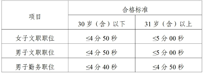 宜宾市公安局公开招聘警务辅助人员公告 因工作需要,经研究决定,面向社会公开招聘警务辅助人员(以下简称“辅警”),现将有关事项公告如下。 一、招聘原则 按照公开、公平、竞争、择优的原则,采取自愿报名和考试、考核相结合的办法择优聘用。 二、招聘名额、范围及条件 (一)招聘名额及职位设置 本次招聘名额共计110名。 文职、勤务职位仅用于学历层次区分,具体工作岗位按照到岗后部门分配为准。 具体工作内容:负责协助公安机关管理执法岗位人民警察开展执勤和其他勤务活动;负责协助公安机关非执法岗位人民警察从事文书助理、档案管理、接线查询、窗口服务、证件办理、信息采集录入、技术支持、警务保障等工作。 各职位招聘名额及要求见附件1《职位表》。 (二)招聘对象范围 户籍在宜宾市或居住地为宜宾市。 (三)招聘条件 1.具有中华人民共和国国籍; 2.拥护中华人民共和国宪法,遵守国家法律、法规,品行端正; 3.报名人员年龄需在18周岁以上、35周岁以下〔1990年1月4日(含)以后,2008年1月4日(含)之前出生〕; 4.报考文职职位需具有本科及以上学历(其中本科要求全日制),勤务职位需具有高中及以上学历(具体要求见附件1); 5.具备履行职责的身体条件。体貌端正,无残疾、无口吃、无重听、无色盲、无重度色弱;面部无明显缺陷(如唇裂、对眼、斜眼、斜颈等);身体暴露部位无明显疤痕,无鸡胸,无严重静脉曲张,无明显罗圈腿,无严重平足,无纹身,无驼背;无精神类疾病;无其他不适宜从事公安警务辅助工作的身心疾病。 其中,文职职位单侧裸眼视力不低于4.6,勤务职位单侧裸眼视力不低于4.8。男性文职职位身高需1.65米及以上,女性文职职位身高需1.55米及以上,男性勤务职位身高需1.68米及以上。 6.符合报考职位要求的其他条件。 (四)有下列情形之一的,不得报考: 1.本人、家庭成员或近亲属参加非法组织、邪教组织或从事其他危害国家安全活动的; 2.编造、散布有损国家声誉的言论或者信息,反对党的理论和路线方针政策,违反国家法律法规的; 3.曾被追究刑事责任或者涉嫌犯罪尚未结案的; 4.因赌博、卖淫嫖娼等受过行政处罚或者有吸毒史的; 5.曾被行政拘留、司法拘留的; 6.曾被开除公职、军籍、学籍的; 7.曾在宜宾市内公安机关从事警务辅助工作主动辞职不满2年的,或因违纪违规被辞退、劝退、解聘的,或擅自离职的; 8.现役军人或全日制学校在读学生; 9.提供虚假个人证明资料或者有较为严重个人不良信用记录的; 10.不适合从事警务辅助工作的其他情形。 (五)优先招聘条件 同等条件下,优先招聘下列人员: 1.烈士或因公牺牲人民警察的配偶、子女; 2.退役士兵; 3.见义勇为积极分子和先进个人; 4.警察类或政法类院校毕业生; 5.具有岗位所需专业资质或者专门技能的人员。 三、报名 (一)报名时间 1.文职(一)、文职(二)、勤务(一)及勤务(二)岗位报名时间为2026年1月4日-5日(共2天)上午9:30至11:30,下午2:30至5:30; 2.勤务(三)、勤务(四)、勤务(五)及勤务(六)岗位报名时间为2026年1月4日-7日(共4天)上午9:30至11:30,下午2:30至5:30; 3.报名结束后,视报名情况决定是否延长报名时间。 (二)报名地点 市公安局后门(市图书馆后)。 注:报名时现场测量身高,身高低于报考职位招聘要求的,将视为不符合招聘条件,不予受理报名。 (三)报名资料 1.《报考信息表》1份(附件2),需事先自行下载。如实、准确填写《报考信息表》的各项内容,并粘贴1寸免冠正面证件照片(底色不限)。除报名人签名处为手写外,其余内容均需打印。 2.本人有效二代居民身份证(含临时身份证)原件及复印件; 3.户口簿户主页及本人页(其中,户口在外市但居住地为宜宾市的,需出具居住地公安机关或社区开具的相关证明)原件及复印件; 4.毕业证原件及复印件; 5.属于优先聘用的,请携带相关证书或证明材料原件及复印件。 注:报名需进行资格初审,请务必携带原件到报名现场。 (四)报名要求 《报考信息表》需严格按照样表格式打印,不按照要求填写、内容模糊不清或存在歧义的,一律不予受理。报考人员报名时所提交的信息必须真实有效,不得弄虚作假,因提供虚假信息导致被取消考试或聘用资格的,责任由考生自负。符合优先招聘条件但不能提供相关依据的,视为自动放弃优先招聘条件。考生只能选择一个职位进行报名,在《报考信息表》上需明确职位名称及职位代码。 (五)资格审查 资格审查包括资格初审、体能测试、笔试、面试、体检及考察工作中的资格确认等环节。资格审查贯穿招聘始终,在任何一个环节中发现应聘者不符合招聘条件的,取消其考试、聘用资格。 (六)领取《考试通知书》 报名人员经资格初审合格后,在报名地点当场领取《考试通知书》。逾期未领取或遗失《考试通知书》而影响考试的一切责任由报名者自负。 若报名合格人数未达到职位招聘名额的3倍,视情况对职位及招聘名额,予以调整。 四、考试 考试项目分为体能测试、笔试、面试。 体能测试实行合格制。考试总成绩按满分100分计算,其中笔试成绩、面试成绩各占总成绩的50%,考试总成绩=笔试成绩×50%+面试成绩×50%。 (一)体能测试 体能测试项目为女子800米跑、男子1000米跑。体能测试合格标准见下表,测试次数只有1次。 ![]() (二)笔试 体能测试合格人员均进入笔试。同时,各职位体能测试合格人员未达到职位招聘名额