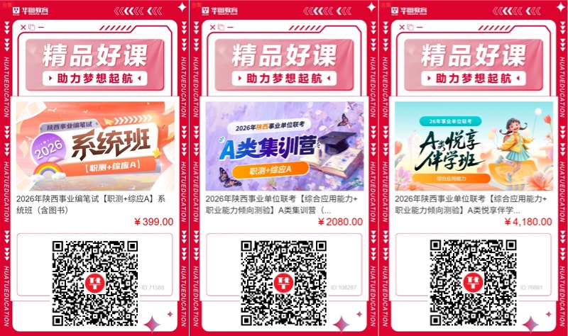 根据工作需要,按照《事业单位人事管理条例》《陕西省事业单位公开招聘工作人员实施办法》有关规定,西安海关2026年面向社会公开招聘9名事业编制工作人员。现将有关事项公告如下: 一、招聘条件 (一)应聘基本条件 1.具有中华人民共和国国籍; 2.拥护中华人民共和国宪法和法律法规,拥护中国共产党领导和社会主义制度,品行端正,遵纪守法; 3.年龄为18周岁以上、38周岁以下(1987年2月27日至2008年2月26日期间出生)。部分招聘岗位年龄可放宽至43周岁以下(1982年2月28日至2008年2月26日期间出生),详见《2026年西安海关所属事业单位公开招聘工作人员岗位表》(附件1); 4.具有招聘岗位所需的学历、专业或技能条件。留学归国人员须提供教育部留学服务中心出具的国(境)外学历学位认证书和课程学习成绩单。毕业证、学位证证书须于2026年7月31日前取得; 5.适应招聘岗位要求的身体条件和心理素质; 6.具备招聘岗位所需的其他条件。其中,对职称资格有要求的,职称资格取得时间截止2025年12月31日;对工作经历有要求的,工作经历计算截止时间为2026年7月31日。 (二)不符合报名应聘的主要情形 1.曾因犯罪受过刑事处罚或曾受过开除处分的;在立案审查期间或未解除党纪、政纪处分的; 2.曾在公务员招录、事业单位公开招聘中被认定有舞弊等严重违反纪律行为的; 3.现役军人和在读的非2026年应届毕业生,以及在读的非2026年应届毕业生用以往取得的学历报名的; 4.事业单位人事管理需要回避的; 5.人事档案(学籍档案)存在“三龄两历一身份”篡改造假或重要材料缺失、严重失实等问题的; 6.失信被执行人; 7.未如实填写《诚信承诺及主动报告事项》(附件2)的; 8.法律、法规规定不符合本次招聘要求的。 二、招聘程序 (一)发布招聘公告 本次招聘在西安海关门户网站(http://xian.customs.gov.cn)发布公告。 (二)报名与资格审查 报名采取网络报名和网上资格审查的方式进行。报名网站为陕西人事考试网(www.sxrsks.cn)。 报名时间:2026年2月27日08:00至2026年3月4日18:00。 应聘人员只能报考一个岗位。在报名期间,资格审查未通过前可以更改报考信息,资格审查通过后的报考信息不得更改。 为便于应聘人员选报岗位,3月3日18:00之前,报名系统将实时显示各岗位的缴费确认报名人数。3月3日18:00之后,报名系统将不再显示各岗位缴费确认报名人数。 资格审查时间:2026年2月27日08:00至2026年3月5日18:00。 报名结束(3月4日18:00)后,应聘人员可以查询审核状况,但不能修改任何报名信息。 (三)网上缴费与报名确认 缴费截止时间为3月5日24:00。资格审查通过的应聘人员应在规定的时间内登录陕西人事考试网进行网上缴费确认。笔试按照每名报考者每科50元的标准收费。未按期缴费确认的,视为自愿放弃报名。缴费成功后,因个人原因未能参加考试者,不予退费。 已网上缴费确认的应聘人员应及时打印报名登记表并妥善保管,以备资格复审等环节核对信息。 最低生活保障家庭人员通过资格审查后,先进行网上缴费确认。在3月9日08:00至3月10日18:00登录陕西人事考试网提交减免报名费申请和相关证明材料(咨询电话029-85717700,接听时间08:30-11:30,14:00-18:00),待陕西省人事考试中心核查通过后予以退费。 (四)开考比例 本次招聘岗位开考比例不低于1:3。未达到规定开考比例的,招聘计划数予以核减或核销,并于3月9日在西安海关网站公布。对应聘岗位被核销的应聘人员,由陕西省人事考试中心办理退费手续。 (五)网上下载打印准考证 已缴费确认的应聘人员应于3月24日08:00至3月28日09:00从陕西人事考试网自行下载打印准考证。 准考证是应聘人员参加笔试、面试资格复审、面试、体检等程序的凭证,请妥善保存。 (六)考试 1.笔试 (1)笔试内容:笔试包括《职业能力倾向测验》和《综合应用能力》两科,各科满分均为150分。 (2)笔试时间:2026年3月28日(星期六)上午。 08:30-10:00 职业能力倾向测验 10:00-12:00 综合应用能力 【图书推荐】2026版陕西省事业单位招聘考试专用教材事业单位A类(四本套)