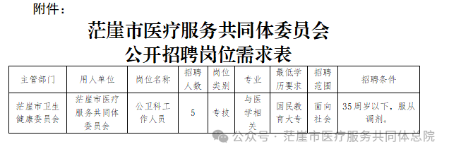 | 一、招聘原则及范围 坚持德才兼备的用人标准,贯彻公开、平等、竞争、择优的招聘原则,面向社会公开招聘。 二、招聘计划 茫崖市医疗服务共同体委员会面向社会公开招聘5名专业技术人员,具体招聘岗位及条件见《茫崖市医疗服务共同体委员会面向社会公开招聘工作人员岗位需求表》(附件1)。 三、招聘条件 1、具有中华人民共和国国籍; 2、遵守宪法和法律; 3、拥护党的领导,热爱卫生事业,敬业精神强;具有良好的品德和较高的职业道德素养、扎实的专业知识功底,符合应聘岗位所需的专业或技能条件; ? ? ?4、岗位所需要的其他条件; ? ? ?5、不予报考情形: ? ? ?曾因犯罪受过刑事处罚或曾被开除公职的;正在接受立案审查的;受到行政处分并正在处分期内的;在事业单位公开招聘和公务员考录中被列入诚信档案库且在有效记录期内的;根据国家和我省有关规定,在相关领域违法失信被列为失信人的;法律、法规以及国家和我省规定不宜聘用的其它情形。 ? ?四、招聘程序 公开招聘工作按照发布招聘信息、考生报名、资格审查、考核、体检、考察、公示、办理聘用手续等程序依次进行。 (一)考生报名 ? ? ? 本次招聘报名自本公告发布之日起报名,截止时间为2026年3月8日18:00(工作日以收到应聘材料的时间为准)。考生在报名时应诚信、准确、规范填报毕业专业及学历。现场报名时应聘人员需提供毕业证书、身份证复印件、相关资格证书原件及复印件等资料。 报名方式: 线上:应聘人员相关证明等资料按要求如实填报(附件2); 线下:应聘人员将所有材料准备齐全到茫崖市花土沟镇民族路131号茫崖市人民医院三楼公卫中心现场报名。 (二)资格审查 资格审查工作由茫崖市医疗服务共同体委员会公卫中心具体负责。资格审查将贯穿招聘工作全过程,在任何一个环节发现不符合应聘资格条件者,随时取消其招聘资格。 (三)考核 1.考试方式 所招聘岗位为专业技术人员均采取笔试和面试相结合的方式进行。(按百分制折算成综合成绩。其中笔试占综合成绩的 60%,面试占综合成绩的40%)。笔试成绩、面试成绩和总成绩均保留2 位小数。若综合成绩并列的,则以笔试成绩高分者为拟聘人选,笔试成绩仍并列的,则加试一场面试,综合成绩排名以加试成绩为准。 2.笔试 形式:闭卷考试。 时间:待定 地点:茫崖市医疗服务共同体委员会会议室 内容:基础知识和专业知识相结合。 3.面试 笔试结束后,根据应聘人员的笔试成绩从高到低,按招聘人数l:3比例确定面试人选(比例不足按实有人数确定)。 ? ?? 时间:待定 地点:茫崖市医疗服务共同体委员会会议室 应聘人员参加各级考试、考核须携带身份证原件。 (四)体检 体检人选根据总成绩从高到低的顺序,按照1:1的比例确定。体检标准参照《公务员录用体检通用标准》执行,体检工作由茫崖市医疗服务共同体委员会组织实施。因体检不合格或经确认本人自动放弃的,经茫崖市医疗服务共同体委员会研究需要递补的,根据应聘该专业人员总成绩从高到低择优依次递补。 (五)公示 经体检考察合格的应聘人员,由茫崖市医疗服务共同体委员会研究确定拟聘人员并在茫崖市医疗服务共同体委员会微信公众号进行公示,公示期为5个工作日。公示期有异议的,由茫崖市医疗服务共同体委员会进行调查核实。 (六)聘用 经公示后无异议或有异议经核实无异议的拟录用人员与用人单位办理聘用手续及签订合同。试用期一个月,试用期满后经考核合格者,予以正式聘用;试用期考核不合格或发现隐瞒聘前病史且身体条件不符合岗位要求以及提供虚假材料者,取消聘用资格。 五、工资待遇 本单位自主聘用制工作人员,按照《茫崖市医疗服务共同体委员会临聘人员招聘实施方案》,根据学历、职称及岗位,兑现基本工资,缴纳五险一金,参加医院内部绩效分配。 咨询电话:张老师:13909775126 ?? 田老师:13909775759 附件1:茫崖市茫崖市医疗服务共同体委员会面向社会公开招聘工作人员岗位需求表 附件2:报名收集表 茫崖市医疗服务共同体委员会 2026年2月13日 报名收集表