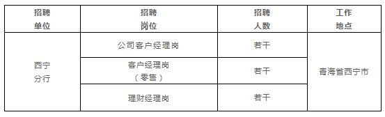 | 上海浦东发展银行成立于1992年,总行设在上海,是一家全国性股份制商业银行,已在境内外设立了42家一级分行、近1700家营业机构。国际权威财经媒体《银行家》(The Banker)发布“2023年全球银行1000强”榜单。浦发银行以一级资本971.1亿美元排名第18位,在上榜中资银行中排名第9,持续保持领先地位。西宁分行作为总行直属的一级分行,于2012年3月正式开业运营,辖内共8家营业机构(含分行营业部)。西宁分行秉承总行“笃守诚信,创造卓越”的理念,以“根植高原,服务青海”为己任,为青海省经济社会的高质量发展贡献“浦发力量”。现根据业务发展和经营管理需要,公开招聘专业人才,招聘岗位突出价值贡献,提供具有同业竞争优势的薪资水平及多元化的职业晋升通道,以“阳光简单,协同共享”的组织氛围诚邀有志投身浦发事业的精英加盟。 报名方式 1.有意应聘者,可登录浦发银行网站(www.spdb.com.cn),点击“今日浦发-浦发招聘”栏,进行在线简历填写与投递。 2.应聘人员须对所提交资料的真实性负责。我行尊重和维护应聘者的隐私权,对应聘者的信息严格保密,应聘资料恕不退回。 3.联系人:史老师 0971-6237910 招聘岗位 招聘岗位公司客户经理岗岗位职责 1.负责公司客户的开发、市场开拓与营销推进,积极配合团队工作。 2.根据分行确定的经营目标,制定个人营销计划并组织实施,完成年度绩效目标。 3.了解、挖掘、满足客户的金融需求,综合运用各类对公金融产品。。 4.密切跟踪了解所负责客户的经营情况,分析其信用变动情况及可能发生的风险,及时调整对客户的营销方案并制定、实施相应的风险防范措施。 应聘条件 1.中共党员优先。 2.本科及以上学历,具备2年及以上银行相关岗位工作经历。 3.熟悉商业银行客户经营市场形势,熟练掌握场景获客的相关知识。 4.具有良好的学习能力、沟通协调、语言表达、文字组织和团队协作能力。 5.无违法违纪或银行监管违规等不良行为记录。 6.符合我行亲属回避相关要求。 客户经理岗(零售)岗位职责 1.零售客户开拓。借助渠道搭建和合作,积极加强客户开拓,跟进和调整服务方案,拓展新的客户市场,提高客户开拓及客户经理的效能。 2.根据分行零售信贷政策及产品销售导向,进行零售信贷产品的市场营销和项目引荐,有效防控不良并提升资产质量,不断提升存量零售信贷客户的综合贡献。3.掌握分行零售信贷业务各种金融产品,有效组合其他零售产品,制定和落实满足客户全面需求的金融服务方案。 4.掌握客户的业务经营发展状况及变化,及时调整客户的授信控制额度和结构,防范和控制业务风险;配合资产保全人员落实安全措施,锁定和缩小风险。 5.加强自身建设,增强合规意识,规范从业行为,防范操作风险。 应聘条件 1.中共党员优先。 2.本科及以上学历,具备2年及以上银行相关岗位工作经历。 3.熟悉商业银行客户经营市场形势,熟练掌握场景获客的相关知识。 4.具有良好的学习能力、沟通协调、语言表达、文字组织和团队协作能力。 5.无违法违纪或银行监管违规等不良行为记录。 6.符合我行亲属回避相关要求。 理财经理岗位职责 1.负责银行个人金融业务的产品营销和客户服务管理并拓展个人客户的金融资产,完成本岗位的工作目标。 2.负责制定客户维护和营销计划,不断提升客户的满意度与贡献度。 3.负责建立、维护、深化客户关系,分析和挖掘客户需求,扩大优质客户群。 4.结合客户需求及市场需求,负责提出产品、流程、营销方案等方面的合理化建议及新产品发展趋势。 5.参与策划并做好各类营销推广活动等。 应聘条件 1.中共党员优先。 2.本科及以上学历,具备2年及以上银行相关岗位工作经历。 3.熟悉商业银行客户经营市场形势,熟练掌握场景获客的相关知识。 4.具有良好的学习能力、沟通协调、语言表达、文字组织和团队协作能力。 5.无违法违纪或银行监管违规等不良行为记录。 6.符合我行亲属回避相关要求。 7.具有基金从业资格证、AFP、CFP资质者,优先考虑。 福利待遇 坚持“敬业专业,创新有为”的员工培养方向,具备完善的薪酬和职级晋升体系,多元化的专业培养机制。薪酬福利涵盖五险一金、企业年金、高原津贴、午餐补助、取暖费、防暑降温费、年度体检、补充医疗保险、工会福利等。 来源:浦发银行网站