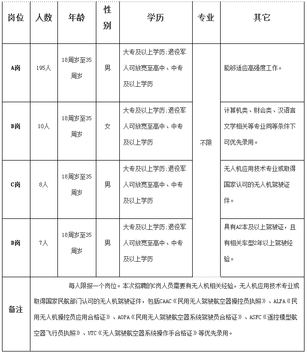 石家庄市长安区2024年警务辅助人员公开招聘公告 根据工作需要,石家庄市长安区面向社会公开招聘警务辅助人员。现将有关事宜公告如下: 一、招聘原则 招聘工作坚持德才兼备和公开、平等、竞争、择优原则。 二、招聘岗位情况 此次公开招聘辅警共计220人,具体招聘岗位、人数、条件等详见《2024年长安区警务辅助人员招聘计划职位表》(以下简称《招聘计划表》)。 2024年长安区警务辅助人员招聘计划职位表 ![]() 三、招聘人员条件 (一)具有中华人民共和国国籍,拥护中国共产党的领导,遵守国家法律、法规,具有较强的事业心和吃苦耐劳精神,具有良好的品行和职业道德,服从组织安排,愿意履行公安机关警务辅助人员的义务。 (二)男身高1.70米以上,女身高1.60米以上,双眼矫正视力不低于1.0,身体健康,五官端正,无残疾、纹身、重听、色盲、口吃等(参照招录人民警察的标准)。 (三)报名人员年龄为18周岁至35周岁,即1988年8月1日至2006年8月1日期间出生。 (四)凡涉及学历、奖励等需要确定时间的,计算日期截止至2024年8月1日。 (五)比例内综合成绩并列的,按照以下顺序进入下一环节:公安烈士和因公牺牲公安机关民辅警的配偶子女;退役军人;退出国家综合性消防救援队伍的救援人员;见义勇为英雄模范和先进个人;警察类或政法院校毕业生;具有岗位所需专业资质或者专门技能的人员以及国家规定的其他应当优先聘用人员。 (六)有下列情形之一的,不得报考: 1.本人或家庭成员参加非法组织、邪教组织或者从事其他危害国家安全活动的; 2.本人家庭成员或主要社会关系人正在服刑或正在接受调查的; 3.受过刑事处罚或者涉嫌违法犯罪尚未查清的; 4.编造、散布有损国家声誉、反对党的理论和路线方针政策、违反国家法律法规信息的; 5.因吸毒、嫖娼、赌博受到处罚的; 6.曾被行政拘留、司法拘留或收容教育的; 7.被吊销律师、公证员执业证书的; 8.被开除公职、开除军籍,或者因违纪违规被辞退解聘的; 9.从事警务辅助工作合同期未满擅自离职的; 10.被依法列为失信联合惩戒对象的; 11.现役军人不得报考,未毕业的全日制普通高校在读学生不得报考; 12.其他不适合从事警务辅助工作的。 四、工资待遇 试用期享受基本社会保险待遇,试用期6个月,试用期不合格的取消录用资格。试用期工资标准为3715元/人/月(包含个人应缴纳社会保险部分等)。层级套转后按照《石家庄市公安机关警务辅助人员管理办法(试行)》执行层级工资标准。 五、报名方法 (一)报名方法、程序及注意事项 1.本次招聘采取网上报名、网上资格初审的方法,每人限报一个岗位。 2.报名网址:人事招考中心(https://rpta.cn/)。 3.报名时间:2024年8月1日13:00至8月7日17:00。 4.缴费时间:2024年8月1日13:00至8月7日24:00。 5.报名程序及注意事项: (1)报名准备。考生开始报名前,必须认真阅读公告内容,详细了解本次招聘考试的程序步骤、有关政策和岗位条件。 (2)注册账号。进入报名网址(https://rpta.cn/),点击“注册”,注册用户名和密码,完成注册后登录网站,按要求上传照片。用户名和密码是登录报名系统的唯一标识(密码可修改),务必牢记并妥善保管。注册过的考生无需重复注册。 (3)填报信息。注册成功后登录,进入报名环节。考生务必认真阅读报名须知,并同意《诚信承诺书》,按要求填写个人信息和报考信息,确认信息无误后,提交等待审核。网上报名实行严格的自律机制,必须承诺履行《诚信承诺书》,对提交审核的报名信息的真实性负责。凡本人填写信息不真实、不完整或填写错误的,责任自负;弄虚作假的,一经查实即取消考试资格或聘用资格。 (4)提交审核。考生“提交审核”后信息将被锁定,在未反馈审核结果前不能修改。一般情况下,审核员24小时内会在报名系统上回复审核结果。“审核未过”的,可根据提示的未过原因,修改信息或改报岗位并重新提交审核;“审核通过”的,将不能再修改。请考生尽量不要选择最后时刻报名,以免因报考条件不符或填报信息不完整等原因“审核未过”而错失改报机会。 (5)完成缴费。审核通过后考生需缴纳报名考务费100元,按照提示步骤进行网上支付。支付方式:支付宝。特别注意:确认“缴费成功”后方可视为完成报名。应聘考生务必牢记报名和交费截止时间,未按时间完成报名和缴费者视为放弃报考。同时,报名和考试期间务必保管好个人的证件和信息,因个人原因造成丢失、被他人盗用和信息被恶意篡改而影响报名和考试的,责任自负。 (二)打印《笔试准考证》 完成网上报名的考生,请及时登录报名网站,按要求打印《笔试准考证》,逾期没有打印《笔试准考证》的视为自动放弃笔试。请考生关注报名网站的通知获取打印《笔试准考证》的时间,不再电话或短信通知。 笔试时,考生须持《二代居民身份证》和打印的《笔试准考证》进入考场。笔试具体地点、考点和要求详见报名网站公告。 六、考试流程 本次招聘采取笔试、体能测试、面试相结合的形式进行。 (一)笔试 1.笔试时间。具体笔试时间和地点详见《笔试准考证》,应聘人员按照《笔试准考证》上确定的考试时间、地点、考场及要求参加考试。请广大考生随时关注长安区人民政府网(http://www.sjzca.gov.cn/)及报名网站(https://rpta.cn/)。 2.笔试内容。笔试采取闭卷方式进行,笔试内容为公共基础知识和公安基础