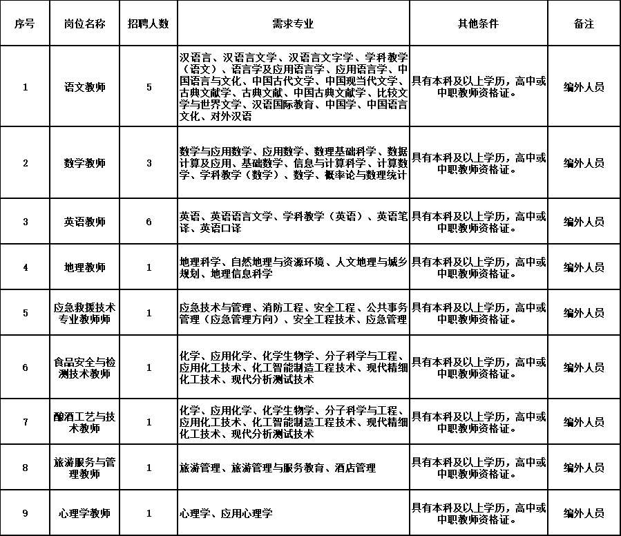 四川省古蔺县职业高级中学校2024年自主招聘编外合同制教师公告 因工作需要,学校面向社会公开招聘编外合同制教师,相关事项公告如下: 一、招聘岗位及要求 ![]() 二、报名及资格审查 2024年8月15日8:00至16:00,考生携带本人有效身份证、毕业证、教师资格证、职业资格证及获奖证书等原件和复印件各1份到古蔺职高老校区品善楼4202教室现场报名并同步进行资格审查。 三、考核 (一)时间:2024年8月16日 (二)地点:古蔺职高老校区(现彰德学校),古蔺县城迎宾大道469号 (三)方式:语文、数学、英语学科采用笔试+专业化面试;其余学科采用专业化面试。 四、聘用 参加考核人员按照考核成绩从高到低择优聘用,拟聘用人员在规定时间内带政审材料(由户籍所在地派出所提供)和县级及以上医院提供的体检表、心理测试资料(体检和心理测试结果须为合格)到古蔺职高签订劳动合同书。 五、待遇 工资由“基础工资+课时津贴”构成,基础工资参照当年参工在编教师标准执行,按政策要求购买“五险”、缴纳住房公积金,享受学校同类人员福利待遇。 六、其他 (一)应聘者须认真阅读招聘公告,按要求如实提供相关资料。在招聘过程中,凡发现应聘者有任何弄虚作假或者违纪违规行为的,一经查实,将取消录用资格。 (二)本公告解释权归古蔺职高。未尽事宜可到校咨询,联系电话:13982780619(刘老师)。 四川省古蔺县职业高级中学校 2024年8月7日 免费学习资源(关注可获取最新开课信息) |