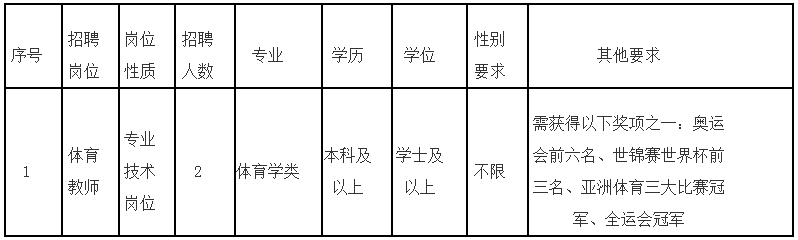 2025年莆田学院面向具有突出贡献的运动员公开招聘体育教师方案 莆田学院位于福建东南沿海、海上“和平女神”妈祖故乡、著名侨乡--莆田市,是2002年3月经教育部批准成立的全日制普通本科大学,实行省市共建、以省为主的管理体制,2021年10月获批硕士学位授予单位,2022年获福建省A类一流应用型建设高校。现因工作需要,拟在人员控制总量内面向具有突出贡献的运动员公开招聘体育教师2名。根据事业单位公开招聘工作人员有关规定,制定具体方案如下: 一、基本条件 1.具有中华人民共和国国籍,拥护中国共产党的领导,热爱社会主义,遵纪守法,品行端正。 2.身体健康,符合福建省教师资格申请人员体检标准要求。 3.学历学位要求:报考者应具有本科学历、学士学位及以上。 4.应聘资格要求,报考者需获得以下奖项之一:奥运会前六名、世锦赛世界杯前三名、亚洲体育三大比赛冠军、全运会冠军。 5.年龄要求:18周岁以上、35周岁以下(在1989年3月至2007年3月期间出生)。 6.取得境外学历学位证书报名者应提供教育部留学服务中心出具的学历学位认证书;认证书等各项资格认定证书落款截止时间为2025年12月31日。 7.无违法违纪行为,未受过纪律处分。 二、招聘岗位及要求 ![]() 三、信息发布 本招聘方案在福建省人力资源和社会保障厅网站、福建就业网、莆田学院官方网站首页通知公告栏、莆田学院人事处网站公开发布。 四、报名和资格审核 1.报名时间:2025年3月5日至2025年12月31日,招满截止。 2.报名方式:凡符合报名条件的报考者请将应聘材料压缩包发送至莆田学院体育学院邮箱tyxy@ptu.edu.cn,邮件主题命名为“应聘体育教师+姓名”,其他报名方式无效。申请材料包括: (1)《莆田学院公开招聘体育教师报名表》(见附件); (2)个人简历; (3)身份证扫描件(正反面须在同一页面); (4)本科及以上学历学位证书扫描件; (5)奥运会前六名、世锦赛世界杯前三名、亚洲体育三大比赛冠军、全运会冠军等获奖证书扫描件。 (6)已参加工作的应聘者,需提交现工作单位人事主管部门出具的同意报考证明(或与单位解除劳动、聘用合同关系的证明)。若暂时无法提交的,经我校同意后最迟可延至考察前提交,但须先提交个人承诺书。 应聘者应严格按照招聘岗位的条件要求报名,并对提交材料的真实性、有效性负责。凡个人填报信息不实,不符合招聘岗位条件和要求的,一经核实,即取消应聘或聘用资格。报考人员所留联系方式应准确无误并确保招聘期间保持通畅。 3.资格审核:学校对应聘者进行资格审核。应聘者在发送应聘材料之日起15日内未收到资格初审通过通知,可视为未通过资格审核,学校不再另行通知,也不接受来访。 五、考核 根据《福建省人事厅关于转发<事业单位公开招聘人员暂行规定>的通知》(闽人发〔2006〕10号)有关规定,对有突出贡献的运动员人员采取直接考核的方式进行公开招聘。 六、考察和体检 按岗位拟招聘人数1:1的比例确定考察、体检人选。 八、公示 考核、体检合格,且符合岗位各项条件要求的拟聘人员,在福建省人力资源和社会保障厅网站、福建就业网、莆田学院人事处网站公示7个工作日。 九、聘用 公示结果不影响聘用的,办理聘用核准手续,单位与拟聘人员签订聘用合同。 资格审核贯穿招聘工作全过程,在任何环节,发现应聘人员不符合招聘条件或弄虚作假的,将取消应聘者考试和聘用资格,问题严重的要追究相关责任。 九、待遇 受聘人员纳入事业单位人员控制总量管理,享受国家和福建省规定的事业单位工作人员相应岗位等级的工资及社会保险等待遇。 十、联系方式 地址:福建省莆田市荔城区西天尾镇紫霄东路2121号 莆田学院紫霄校区人事处 邮编:351100 电话:0594-2697229 E-mail:rsczp@ptu.edu.cn 十、监督 本次招聘工作由莆田学院人事处和莆田学院体育学院共同组织实施。莆田学院纪委(监察专员办)对招聘工作进行全程监督,监督电话:0594-2692211。 附件: 莆田学院人事处 2025年3月5日 免费学习资源(关注可获取最新开课信息) |