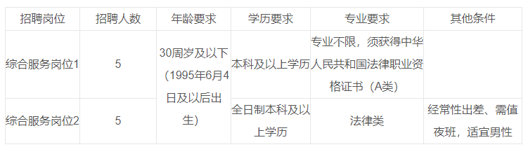 2025年徐州市云龙区人民法院辅助人员招聘公告 徐州市云龙区人民法院因工作需要,决定面向社会公开招聘辅助人员。现将有关事项公告如下: 一、招聘岗位 辅助岗位10人,招聘岗位、人数及条件见《徐州市云龙区人民法院公开招聘辅助人员岗位简介表》 徐州市云龙区人民法院公开招聘辅助人员岗位简介表 ![]() 二、招聘条件 (一)基本条件 1.具有中华人民共和国国籍; 2.拥护中国共产党的路线、方针、政策,遵守宪法和法律; 3.学历是指具有国家承认的学历及相应学位,报名人员须于报名截止前取得学历(学位)证书。“专业”的设置目录参照《江苏省2025年度考试录用公务员专业参考目录》; 4.应届毕业生报名时须提供所在院校出具的《毕业生就业推荐表》,且须于正式报到前提供相应学历学位证书。 5.年龄在30周岁以下,即1995年6月4日后出生; 6.具有正常履行职责的身体条件和心理素质,经审查,适合法院工作。 (二)有下列情形之一的,不得报考: 1.曾被追究刑事责任或者涉嫌违纪违法正在接受有关专门机关审查尚未作出结论的; 2.曾被行政拘留、司法拘留的; 3.曾因违法违纪,被开除、辞退、解除劳动合同的; 4.受过记过以上处分,受严重警告以下处分尚未接触的; 5.被依法列为失信联合惩戒对象的; 6.违反社会公德、职业道德造成不良影响的; 7.其他不适宜在法院工作的情形。 (三)任职回避条件 报名人员的父母、配偶在徐州市云龙区辖区内的律师事务所担任合伙人或者设立人的、在徐州市云龙区辖区内以律师身份担任诉讼代理人、辩护人,或者为诉讼案件当事人提供其他有偿法律服务的,应在报名时主动如实告知,在入职前需消除任职回避情形,并做出回避承诺,否则成绩作废。 三、招录程序 (一)报名 报名时间:自公告发布之日起至2025年6月13日17时止。 报名方式:报考人员可登录徐州市云龙区人民法院网(网址:http://xz.ylfy.gov.cn)自行下载《报名表》,填写后在网上进行报名,并将以下材料扫描后发至徐州市云龙区人民法院邮箱(邮箱号:ylfyzzc@163.com),并查收回复邮件。收到回复邮件后视为报名成功。 1.本人身份证(双面); 2.户口簿(户口簿首页和本人页); 3.毕业证、学位证; 4.法律职业资格证(综合服务岗位1提供); 5.一寸证件照(以jpg/jpeg形式打包,以姓名+手机号命名)。 报考人员务必提供可确保取得联系的手机或固定电话号码。 云龙区人民法院根据考生提供的材料进行资格初审,通过资格初审的人员名单将通过徐州市云龙区人民法院网(网址:http://xz.ylfy.gov.cn)进行公布。 (二)资格复审 报名成功的考生需提供个人的身份证、户口簿、毕业证、法律职业资格证书等证明材料原件及1份复印件进行资格复审,合格后方可进入面试。 (三)笔试。 本次招聘组织笔试,由云龙区法院组织有关人员对通过资格复审的人员进行笔试,笔试时间另行通知。 1.笔试为闭卷,内容为裁判文书撰写。 2.笔试总分为100分,60分以上为合格。 (四)面试 本次招聘组织面试,由云龙区法院组织有关人员对笔试合格人员进行面试,面试时间另行通知。 1.面试形式:采用结构化面试,通过对应试者个性特征、理解能力、表达能力、应变能力、专业能力等方面的测试,判断应聘者对应聘岗位的适应程度。 2.面试总分为100分,60分及以上为合格。 (五)考察 面试结束后,根据考生成绩(笔试成绩50%+面试成绩占50%)从高分到低分按拟招聘人数1:1.5的比例,确定进入考察程序人选。成绩相同的,以中共党员、研究生及以上学历、有3年以上法院工作经历者优先。 考察内容主要包括应聘人员的思想政治表现、道德品质、业务能力、工作实绩和遵纪守法情况。 (六)体检 对考察合格的人员按招聘人数1:1组织体检,体检标准参照《公务员录用体检通用标准(试行)》《公务员录用体检操作手册(试行)》执行。因体检不合格出现岗位空缺的,从考察合格人员中由高分到低分依次递补。 体检时间、地点另行通知。 应聘人员应保持报名时填报的联系方式畅通,以便通知或递补。因应聘人员个人原因延误的,由应聘人员承担相关责任。 (七)公示 拟聘用人员名单在徐州市云龙区人民法院网(网址:http://xz.ylfy.gov.cn)上进行公示。 公示期为五个工作日。 四、聘用与管理 (一)聘用相关事宜 公示期满后,与没有问题的拟聘用人员签订聘用合同,被聘用人员必须在规定日期报到,逾期未报到者或不服从安排者,取消聘用资格。 拟聘用人员与原单位签有劳动或聘用合同以及其他协议的,由应聘人员本人在规定的期限内解除,如与原单位发生人事(劳动)争议等,均由应聘人员本人解决。 (二)管理 被聘用人员试用期为两个月。在试用期内进行试用期考核。试用期满合格者正式聘用,薪酬待遇按本院同岗位聘用人员标准执行,交纳五险一金;试用期不合格者解除劳动合同。 五、工作纪律 本次招聘坚持“公开、平等、竞争、择优”的原则,做到信息公开、过程公开、结果公开,切实增强招聘工作透明度。加强考务管理,严肃考风考纪,接受社会和群众监督。对应聘人员考试作弊或弄虚作假的,一律视情节轻重取消其考试或聘用资格,受聘后查实的,解除劳动合同,予以清退。对工作人员徇私舞弊违反招聘纪律的,视情节轻重,调离工作岗位或给予处分,构成犯罪的依法追究其刑事责任。 联系电话:0516-67667019、67667091、67667085 监督电话:0516-67667088 (咨询时间:周一至周