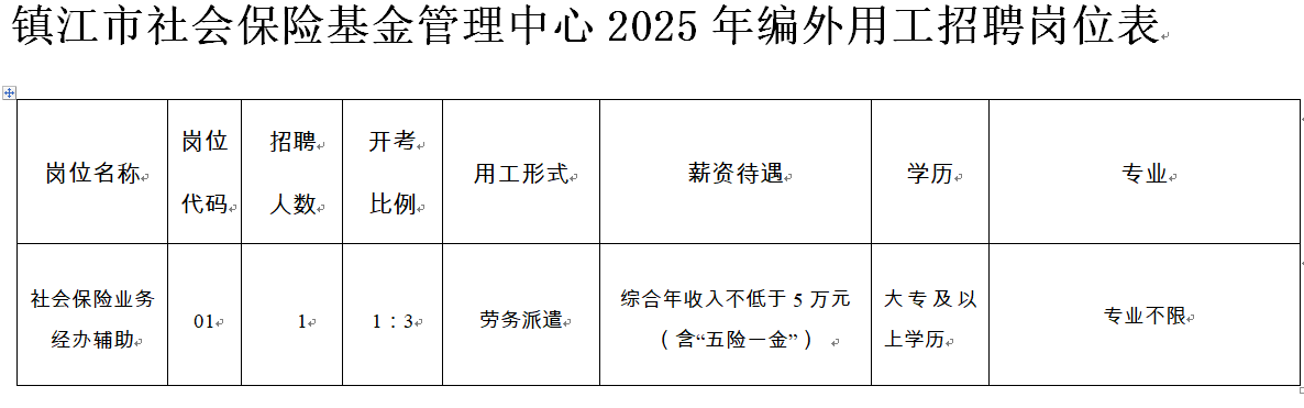 镇江市社会保险基金管理中心2025年编外用工招聘公告 根据《镇江市市级机关事业单位编外用工管理办法》文件精神及镇江市社会保险基金管理中心(以下简称市社保中心)编外用工相关管理办法,结合本单位编外用工空缺和工作需要,市社保中心面向社会公开招聘编外用工1名。 一、报考条件 (一)具有中华人民共和国国籍; (二)年龄为18周岁以上、35周岁以下(1989年7月31日至2007年8月6日期间出生); (三)遵守中华人民共和国宪法和法律,拥护中国共产党领导和社会主义制度; (四)具备良好的品行,无违法违纪行为; (五)具备岗位所需的专业或技能条件; (六)适应岗位要求的身体条件; (七)招聘岗位、人数和所要求的学历、专业等资格条件详见 ![]() 二、应聘报名 (一)报名时间、方式 报名时间:2025年7月31日至8月6日。 报名方式:采取电子邮箱方式报名,应聘者在规定时间内将《镇江市社会保险基金管理中心2025年编外用工招聘报名表》(附件2,以下简称《报名表》)及相关报名材料的扫描件打包发送至邮箱:1134498183@qq.com,标题注明:姓名+岗位代码。 报名所需材料:《报名表》(附件2)、本人身份证、毕业证书、学位证书。 (二)资格审核 1、资格初审 招聘单位根据《岗位表》中所要求的资格条件对应聘人员的报名信息进行资格初审。8月10日前,应聘者可到个人报名邮箱查询是否通过资格初审。通过资格初审的人员,即视为报名成功。报考者提供虚假报考材料的,一经查实,即取消报考资格。 2、资格复审 笔试成绩公布后将组织资格复审,具体时间、地点另行通知。招聘单位对照公告和《岗位表》所要求的报名资格条件,审核应聘人员报名材料的原件。 笔试后入围下一轮测试的人员须参加资格复审。复审时携带报名所需资格条件的证书或证明等材料原件及复印件1份。 通过资格复审人员名单在镇江市人才在线(https://hrol.cn/index.php)网站公告,资格复审不通过或在规定时间内不参加复审的应聘人员,取消入围下一轮面试资格,并在报考同岗位的应聘人员中按从高分到低分的顺序依次递补人选参加资格复审。 笔试成绩进入3:1范围内的应聘人员,以及其他排名较前的人员,请在成绩公布后保持联系方式畅通,以便招聘单位通知资格复审或递补,无法联系者视为自动放弃。 (三)岗位核减、取消 报名截止后,该岗位报名人数未达到开考比例的,延长报名时间,重新发布公告接受报名,仍达不到开考比例的,按照相关标准核减招聘人数或取消招聘岗位。 三、考试 市社保中心委托有资质的人力资源服务机构组织实施笔试和面试工作。 (一)笔试 具体时间地点另行通知。笔试时间90分钟,笔试满分100分,合格线为60分,达不到合格线者不得进入面试。考试不指定辅导用书。笔试成绩于笔试结束后3个工作日内在招聘信息发布网站公布。 在笔试合格人员中,按笔试成绩由高分到低分的顺序和招聘计划数的3倍比例确定进入下一轮测试人选(末位同分则一并进入)。 (二)面试 采用结构化面试,具体时间地点另行通知。面试时间15分钟,面试成绩现场公布。面试成绩满分为100分,合格线为60分。报考者面试成绩必须在60分(含)以上,方可进入下一个考录程序。 考试总成绩按照笔试成绩50%,面试成绩50%的比例合成计算。笔试、面试成绩保留两位小数,第三位小数按照“四舍五入”办法处理。总成绩保留原始计算数值。所有考试结束后3个工作日内,在招聘信息发布网站对总成绩进行公示。 四、体检和考察 按照总成绩排名和招聘人数1:1的比例确定体检、考察人选。体检和考察工作由市社保中心组织。体检和考察标准参照招录公务员标准执行。 因体检、考察不合格的,由市社保中心依据实际情况确定是否递补,若递补,在该岗位合格人员中,按总成绩排名依次递补。 五、录用 体检、考察合格的人员,经审核后在招聘信息发布网站公布。公示期满无异议的,市社保中心按规定程序办理人员录用手续。招聘人员采用劳务派遣的方式,被聘用者与劳务派遣机构依法签订劳动合同,由劳务派遣机构派遣至本单位工作。被聘用人员与原单位签有劳动合同或聘用协议的,由应聘者本人自行负责处理。聘用名单公布一个月内未到本单位报到并办理聘用手续的,取消聘用资格。 六、其他 本次公开招聘工作,坚持“公开、平等、竞争、择优”的原则,接受纪检监察部门和社会公众的监督。报名咨询电话:0511-81889201。监督电话:0511-85342878。 镇江市社会保险基金管理中心 2025年7月31日 免费学习资源(关注可获取最新开课信息) |