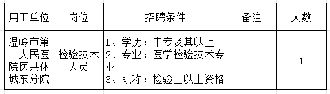 | 因工作需要,温岭市第一人民医院医共体城东分院现面向社会招聘编外员工若干名,现将有关事项公告如下: 招聘岗位: