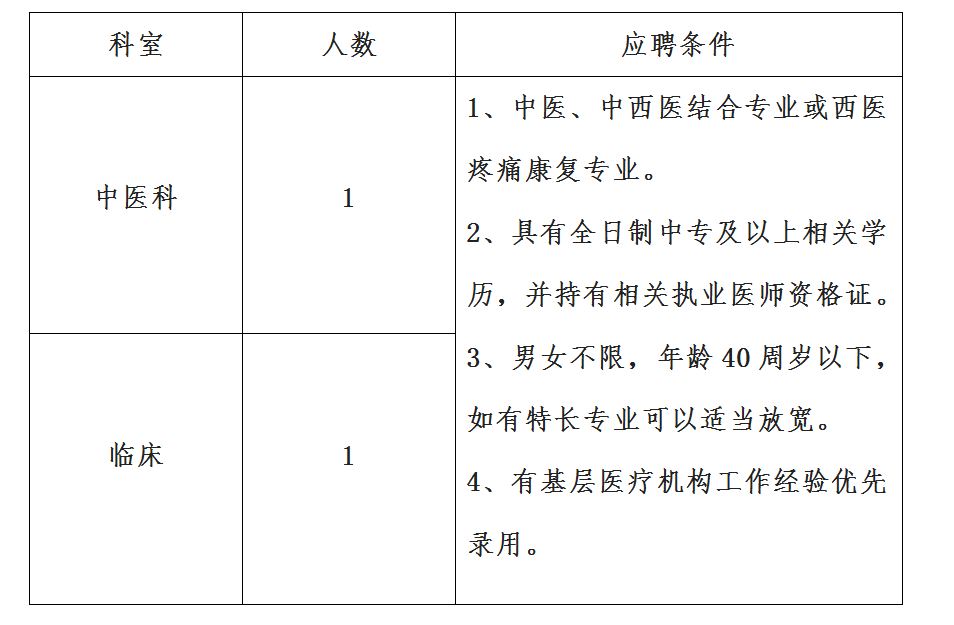 二、招聘条件 坚持德才兼备的用人标准,公开、公平、公正,择优录用原则。 1.遵守国家的法律、法规、规章,具有良好的职业道德,品行端正,诚实守信,无违法、违纪行为及不良记录。 2.具有适应岗位要求的身体条件和心理素质,身心健康,有较好的人际沟通、语言文字表达能力和团队协作能力。 3.具备应聘岗位所要求的专业技能。 4.在读学生、合同期或服务期未满人员不得参加应聘。 三、报名程序 1.报名方式:本次报名采取现场报名的方式进行 2.报名地点:巴彦淖尔市临河区第二人民医院一楼 3.咨询电话:13847828670 4.报名审核资料: 应聘者须提供本人简历、学历证书原件、学位证书、教育部学历证书电子注册备案表或学历认证报告、身份证、执业医师证及相关资格证书等其他材料。 5.资格审查: 对应聘人员的资格审查工作贯穿于招聘工作的全过程。如发现所提供资料有不实或不符合应聘要求的,医院将随时取消应聘资格,已录用的取消录用资格。 四、福利待遇 薪资优厚,工资(基本工资+绩效工资)高于行业内一般水平,缴纳五险一金。 五、其他事宜 对应聘者在工作期间被证明不符合录用条件要求的,取消录用资格。在校期间或工作期间有违规、违纪的不予录用。 标签: 巴彦淖尔市临河区第二人民医院 人员招聘 医院招聘 医疗单位招聘 医护招聘公告 |