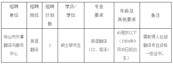 2025年舟山市人民政府外事办公室下属事业单位公开招聘工作人员公告 根据《浙江省事业单位公开招聘人员暂行办法》规定,经舟山市人力资源和社会保障局同意,舟山市人民政府外事办公室下属事业单位舟山市外事翻译与服务中心决定面向社会公开招聘工作人员1名。现将有关事项公告如下: 一、招聘单位简介 舟山市外事翻译与服务中心为舟山市人民政府外事办公室直属的相当于正科级公益一类事业单位,经费形式为全额拨款。主要承担市领导重要外事活动的翻译,全市重要国际会议和经贸、文化等重大涉外活动的同传、交传翻译,我市拓展与世界各国交流与合作的语言翻译,为全市各领域国际交流与合作提供相关服务,办理因公出国护照(通行证)、因公签证(签注、出境证明)手续,我市有关文件、法律法规、公报、协议等文本的笔译及翻译校审工作等。 二、招聘计划 ![]() 三、招聘的范围、对象和条件 (一)具有中华人民共和国国籍,户籍不限,遵守中华人民共和国宪法、法律和法规; (二)遵守纪律、品行端正,具备良好的职业素质; (三)具有适应岗位要求的身体条件和岗位所需的其他条件; (四)国(境)外学历获得者须取得教育部中国留学服务中心出具的境外学历、学位认证书,视同国内普通高校同等学历、学位; (五)舟山市内机关事业单位在编人员不得报考; (六)目前正在全日制普通高校就读的非2025年应届毕业生不能以已取得的学历、学位报考; (七)法律、法规规定不得聘用为事业单位工作人员的其他情形人员,不得报考。 四、信息发布平台 (一)舟山市人力资源和社会保障局网站:http://zsrls.zhoushan.gov.cn/ (二)舟山市人民政府外事办公室网站:http://zswsb.zhoushan.gov.cn/ 其中,舟山市人民政府外事办公室网站作为发布考试、体检、考察等相关信息的唯一平台。 五、报名办法和资格审查 (一)报名审核 本次招聘采用电子邮件报名的方式。 1、报名时间:自公告发布之日起至2025年10月15日下午4:00止,逾期不予受理报名。 2、报名材料: (1)《舟山市事业单位公开招聘工作人员报名表》(格式见附件1,填全个人简历、粘贴本人近期免冠电子证件照片) (2)本人有效身份证(正反面); (3)学历、学位证书(国(境)外学历获得者须提供教育部中国留学服务中心出具的境外学历、学位认证书); (4)其他能证明语言翻译、工作经历能力等相关材料。 3、报名方式:报名材料要求完整、齐全,报名者应对上述证明和材料的真实性负责,所有资料均需原件扫描成PDF格式,一并发送至单位报名邮箱faozhoushan@faozhoushan.com(邮件主题设为“应聘英语翻译岗位+姓名”)。 本次招聘不设开考比例。 (二)资格复审 考生在考试前将进行现场资格复审,复审时考生需提供报名材料原件及复印件。证件(证明)原件不全或提供的证件(证明)原件与报考资格条件不相符者,不能通过资格复审。未按规定时间参加资格复审的,视作放弃考试资格。 资格审核由舟山市人民政府外事办公室负责组织实施,具体时间、地点另行通知。 六、考试方式 考试采用“面试(含专业能力测试)”的形式,满分为100分,合格分为60分,低于60分不进入下一环节。合格报名人数达到招聘计划数6倍以上的,增加面谈环节,根据面谈成绩从高分到低分筛选后,按招聘计划数1:6的比例确定入围面试对象,面谈成绩不计入总成绩。考试结束后,根据总成绩高低,按照招聘岗位计划数1:1的比例确定体检、考察对象。考试具体时间、地点另行通知。 七、体检和考察 体检按照人社部、国家卫计委、国家公务员局《关于修订〈公务员录用体检通用标准(试行)〉及〈公务员录用体检操作手册(试行)〉有关内容的通知》(人社部发〔2016〕140号)执行。报考人员不按规定时间、地点参加体检的,视作放弃体检。考察按照中共中央组织部《公务员录用考察办法(试行)》(中组发〔2021〕11号)执行,考察不合格者不得聘用。 如体检、考察不合格或放弃的,将在成绩合格人员中按成绩从高分到低分依次递补。体检和考察工作由舟山市人民政府外事办公室负责组织实施。 八、公示及聘用 经体检、考察合格者,按岗位确定拟聘用人选,并在舟山市人力资源和社会保障局网站、舟山市人民政府外事办公室网站上公示7个工作日。公示期满后,没有反映问题或反映问题经查实不影响聘用的,填写《舟山市事业单位新增人员审核表》,签订聘用合同,办理事业单位入编手续。拟聘用对象公示后,在规定时间内无正当理由逾期不报到的,取消聘用资格。拟聘用对象公示后,均不再递补。 九、其他事项 (一)报考人员对本招聘公告有异议的,可在公布之日起7日内向舟山市人民政府外事办公室反映。对应聘违纪违规行为的认定和处理,按照《事业单位公开招聘违纪违规行为处理规定》(人社部令第35号)执行。 (二)本公告未尽事宜,由舟山市人民政府外事办公室负责解释。咨询电话:0580-2281291、监督电话:0580-2283176。 舟山市人民政府外事办公室 2025年9月28日 免费学习资源(关注可获取最新开课信息) |