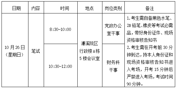 (四)笔试内容 采取闭卷形式进行,党政办公室干事笔试科目为参照公务员行政职业能力测验考试科目,财务科干事笔试科目为岗位相关专业知识,满分100分。 (五)考生须知 进入考场时,考生须将随身携带的背包、文字资料、手机(调至关闭状态)及其他电子设备等与考试无关的物品放在监考人员指定的物品存放处。考试时严禁携带各种通讯设备(如手机、无线耳机、智能手表、运动手环等)、具有计算存储功能的电子设备及与考试相关的资料进入考场,违反者将按有关规定处理。考试过程中,如突感身体不适,请主动联系考点工作人员,听从工作人员安排。对请人代考、冒名顶替和舞弊的考生,取消聘用资格。 三、面试及体检、考察 此次招聘过程中,招聘岗位面试、入围、体检、递补等后续招聘程序的公告将在我院官网发布,请考生及时关注官网动态。 通信地址:江西省九江市十里大道1272号(九江学院附属口腔医院濂溪院区) 公交线路:十里大楼站,101路、102路、104路、108路、2路、32路、58路、24路、38路、67路、69路、81路、89路可达 九江学院附属口腔医院 原文标题:2025年下半年行政岗位招聘现场资格审查及笔试公告 文章来源:https://www.jjudh.cn/03/05/202510/t20251022_7036315.html |