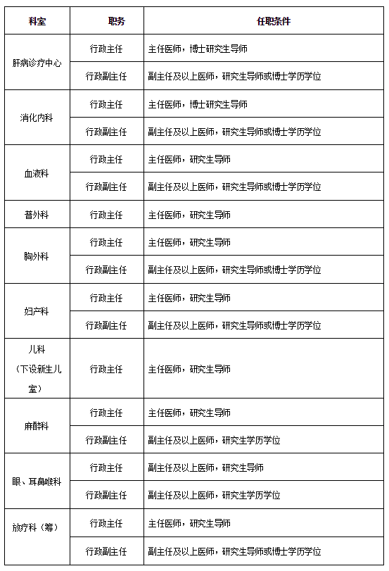 上海市公共卫生临床中心工作人员公开招聘公告 上海市公共卫生临床中心是一所承载百年历史底蕴、兼具雄厚实力与蓬勃发展活力的三级甲等医院,为复旦大学附属医院。自1900年建院以来,始终肩负守护人民健康的使命,是上海市公共卫生医疗救治体系的重要组成部分,承担着应对突发公共卫生事件的艰巨任务。2004年作为上海市政府“一号工程”迁址发展,形成“一院两址”的格局,本部坐落于上海市金山区,占地503亩,分部位于上海市虹口区,占地45亩。医院环境清幽雅致,占地面积与绿化覆盖率在全市医院中位居榜首,营造了舒适宜人的工作与生活氛围。 医院核定床位1460张,设有28个临床科室、8 个医技科室、3 个平台科室及7个科研平台,拥有2个国家重点学科与2个国家临床重点专科,为高质量诊疗提供坚实学科支撑。医院始终秉持“医防融合、平急结合”和“精专科、优综合”发展理念,聚焦患者需求强化“一站式”综合诊疗服务体系。在建的医院“十四五”应急医学中心计划于明年初投用,届时金山院区将构建成综合救治能力突出、急救功能全面的现代化医疗体系,形成“地面+空中”立体急救网络,大规模突发公共卫生事件快速响应能力极大提升。 医院教学体系和科研平台完善,是WHO新发与再现传染病临床管理、培训和研究合作中心,承担国家传染病培训基地建设任务,拥有全国医师进修教育基地2个、上海市临床医学研究中心(艾滋病、结核病)、上海市新发与再现传染病研究所、上海市公共卫生重点学科等11个省部级平台,是上海市专科医师规范化培训基地之一。近十年承担国家科技重大专项、重点研发计划等国家级项目200余项,发表高水平论文3000余篇(其中IF>10分的SCI论文160余篇),申请专利200余项,授权近70项,转化20余项。 医院集临床诊疗、临床研究、转化医学、基础研究、公共卫生管理为一体,坚持高层次人才引进和自主培养相结合,是复旦大学的硕士、博士研究生培养点,复旦大学博士后流动站,与澳大利亚堪培拉大学建立了长期合作交流。拥有欧洲科学与艺术院院士2人,国务院政府特殊津贴专家、上海市领军人才、上海市医学领军人才、上海市优秀学科带头人、上海市东方英才、上海市浦江人才、上海市科技启明星、上海市超级博士后等60余人。 为适应医院快速发展需要,根据《上海市事业单位公开招聘人员办法》(沪人社规〔2019〕15号)的规定,按照公开、平等、竞争、择优的原则,现面向社会公开招聘以下岗位: 一、 招聘岗位及职数 科室行政主任、副主任:24人 二、招聘要求 (一)基本条件 1、具有较高的思想政治素质; 2、具有胜任岗位职责所必需的专业知识和职业素养; 3、具有较强组织领导和沟通协调能力; 4、具有强烈事业心和责任感; 5、具有良好品行修养,自觉弘扬“敬佑生命、救死扶伤、甘于奉献、大爱无疆”职业精神; 6、身心健康,能够适应岗位工作强度与作息要求,具备正常履行岗位职责的身体条件和心理素质; 7、年龄原则上不超过54岁(具体以2025年11月30日报名截止日期计算,有特殊政策规定的按相关要求执行)。 (二)招聘岗位及任职条件 1、临床科室 ![]() 2、医技科室 ![]() 3、行政部门 ![]() 三、招聘办法 1. 报名 请有意向的人员于2025年11月30日24时前将个人简历及相关证明材料(包括但不限于身份证、高等教育阶段学历、学位证书、医师资格证书、执业证书、职称资格证书及聘任证明)复印件寄至上海市公共卫生临床中心人力资源部(简历上请注明应聘岗位)或者将上述材料扫描件发至电子邮箱:hr_gwzx@163.com(邮件主题中请注明姓名、应聘岗位)。 邮寄地址:金山区漕廊公路2901号防控东楼105室人力资源部 2. 资格审查 人力资源部会同其他相关部门开展资格审查,通知符合条件的人员开展面试。 3. 面试 面试主要测试应聘人员的岗位专业知识、业务能力和综合素质,可采取答辩、结构化面试、情景模拟、实际操作等多种方式进行,以主考官提问为主,其余考官可做补充性提问。 4、身体检查 体检参照《国家公务员通用体检标准(试行)》,统一组织到本院或三级甲等医疗机构进行体检。 5. 考察 由上海市公共卫生临床中心组织考察,主要考察应聘人员的思想政治素质、遵纪守法情况、道德品质和诚信记录。 6. 拟聘人员的确定和公示 根据考核、体检、考察结果,对拟录用人员在"上海市人力资源和社会保障局官网"进行公示,公示时间为7天。公示无异议,报上级主管部门上海申康医院发展中心审核通过后,再报上海市人力资源和社会保障局核准备案。公示如有异议、影响聘用的,根据查实结果确定是否录用。 四、相关待遇和其他事项 上述人员一经录用,其工资、福利和社会保险等相关待遇按照有关规定执行。 五、联系方式 联系人:高老师、惠老师 联系电话:021-37990333-8351 021-37990333-8376 监督电话:021-37990333转8350 上海市公共卫生临床中心 2025年11月07日 免费学习资源(关注可获取最新开课信息) |