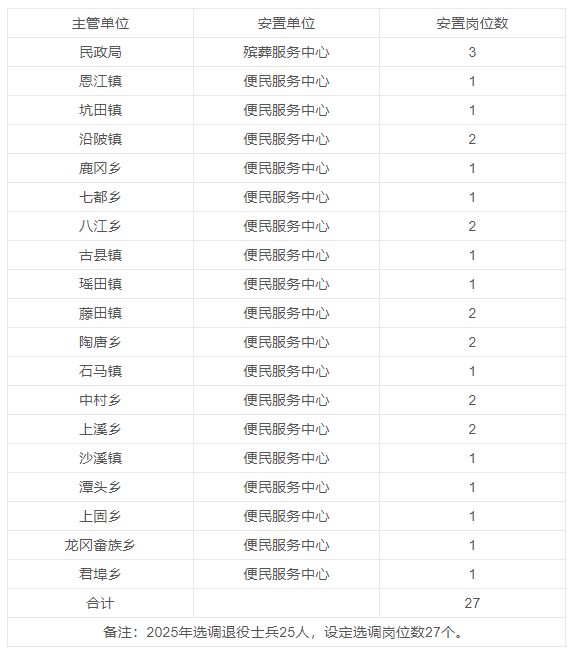 永丰县2025年退役士兵选调考试公告 为提高退役士兵安置就业水平,逐步解决我县转业士官安置历史遗留问题,经县政府批复同意,拟面向安置在自收自支事业单位的部分退役士兵公开选调25名工作人员至全额拨款事业单位工作,现将有关选调考试事项公告如下: 一、选调原则 坚持德才兼备、以德为先的用人标准,贯彻公开、公平、公正、竞争、择优的原则,选调能力素质与岗位要求相适应的人才。 二、选调范围及人数 面向全县服现役12年及以上(符合国家安置政策)的转业士官(含服现役满上士军衔规定年限并直接从非军事部门招收的士官),由县人民政府安置在自收自支事业单位工作的在编人员,选调25人至全额拨款事业单位工作,其个人身份由自收自支转为全额拨款。 三、选调单位、职位与资格条件 选调单位及名额:具体选调单位及名额详见《永丰县2025年选调退役士兵安置岗位计划表》(附件3)。 资格条件:专业、学历和年龄均不限。 四、选调人员必须具备的基本条件 1.政治思想表现好,品行端正,爱岗敬业; 2.身体健康,能履行所选调岗位的职责; 3.工作表现良好; 4.具备选调职位所要求的其他资格条件。 5.具有下列情形之一的,不得报考: (1)涉嫌违法违纪正在接受有关机关审查尚未作出结论的; (2)受党纪政纪处分者; (3)法律、法规和相关政策规定的其他情形; (4)被纳入失信人员名单报考前未被撤销的; (5)存在涉黑涉恶问题,加入邪教组织、组织或参与非法宗教活动的。 五、选调程序 选调工作按照发布公告、单位推荐、组织报名、资格审查、考试、体检、考察、公示和调动等步骤进行。 1.发布公告 在永丰县人民政府网上发布公开选调公告。 2.单位推荐:单位根据报考人员现实表现情况推荐,对2024年年度考核的合格及优秀的予以推荐,其他等次不予推荐。 3.组织报名 (1)报名方式:采取现场报名的方式进行; (2)报名时间:2025年11月20日—2025年11月21日17:00; (3)报名地点:永丰县退役军人事务局; (4)报名所需材料:①下载并填写《永丰县选调退役士兵报名表》(附件1);②本人身份证、退役军人证原件及复印件,近期同底免冠1寸彩色照片3张;③工作单位及主管部门同意报考证明。 4.资格审查 资格审查在报名时进行,由退役军人事务局和人社局抽调人员进行审核,主要审核报考人员是否符合拟报考职位的资格条件。根据2023年选调公告,2023年度符合选调资格且未报名的退役军人2年内不能参加选调考试,取消2025年选调资格考试。资格审查工作贯穿选调工作全过程,凡弄虚作假或资格不符合选调条件的,一经查实即取消选调资格。 5.考试 考试由笔试和面试两部分组成,分值各为100分,按笔试成绩和面试成绩各占50%的比例计算考试总成绩。 (1)笔试:笔试按1:1.5的比例进行,未达到开考比例则相应调减或取消岗位的选调计划。笔试采取闭卷方式进行,笔试科目为《公共基础知识》,笔试时间和地点见准考证。准考证领取时间另行通知,领取地点为永丰县退役军人事务局。 (2)面试:根据笔试成绩从高分到低分按1:1.2的比例确定入闱面试人员,末位同分者一并入闱面试。面试采取结构化面试方式进行,面试成绩以修正后成绩为最终面试成绩。面试时间另行通知。 6.体检和考察 (1)体检。根据考生合成总成绩,从高分到低分按1:1的比例确定体检对象(如合成总成绩相同,则按面试成绩从高到低确定)。如考生自动放弃体检或体检不合格的造成岗位空缺的,则从高分到低分按序递补一次。依次体检标准参照《公务员录用体检通用标准(试行)》执行,体检费用自理。体检具体时间、地点另行通知。 (2)考察:考察由县退役军人事务局和县人社局共同组织实施,主要考察选调人员进入单位方式、年度考核情况、思想政治、道德品质、现实表现以及有无违法违纪等情况。 (3)对于考察不合格、考生自动放弃选调等导致选调岗位人员出现空缺时,不再进行递补。 7.公示和调动 考察结束后,在永丰县人民政府网公示7个工作日。公示期满后,对没有问题或反映的问题不影响选调的,按照从高分到低分的方式进行选岗,报县政府批复后,按程序办理相关选调手续。 六、纪律与监督 严格按照有关规定和程序开展公开选调工作,坚决杜绝违规违纪现象发生。报考人员应对照选调职位资格条件诚信报考,选调过程中一经发现存在造假、考试舞弊等情形的,立即取消其参与选调资格。对违反公开选调纪律的工作人员及报考人员,将按照有关规定严肃处理。 七、组织领导 为确保选调工作的顺利开展,成立县选调工作领导小组,负责选调的日常工作。 附件1 永丰县2025年选调退役士兵报名表 ![]() 附件2 永丰县2025年选调退役士兵安置岗位计划表 ![]() 免费学习资源(关注可获取最新开课信息) |