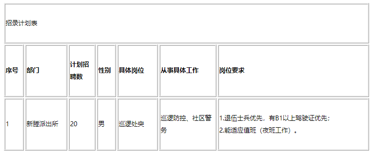嘉兴市公安局秀洲区分局新塍派出所关于公开招聘的公告 嘉兴市公安局秀洲区分局新塍派出所决定面向社会公开招聘警务辅助人员。现将有关事项公告如下: 一、招聘计划 计划面向社会公开招聘警务辅助人员20名。具体招聘岗位、招聘计划等要求详见附件1。 二、薪酬待遇 警务辅助人员薪酬待遇按照有关文件规定执行,实行岗位绩效考核和分类分级管理,统一缴纳“五险一金”。 三、招聘条件 (一)基本资格条件 1.具有中华人民共和国国籍;拥护宪法、遵守法律法规,品行端正;身心健康;热爱公安事业; 2.具有嘉兴市户籍,符合本招聘条件(二)的人员户籍不限,岗位有要求的除外; 3.年龄在18周岁以上,32周岁以下(1993年1月1日至2007年1月1日期间出生),身体健康,勤务辅警应具有国家承认的大专及以上学历(毕业证书须在2025年8月30日前取得)及履行岗位职责所需的专业资质具备履行岗位职责所需的身体条件和专业资质。 (二)符合下列条件之一的人员报考勤务辅助人员,文化程度可放宽至高中或中专 1.部队优秀退役士兵; 2.持有驾驶B1证人员; 3.具有国家级资质的特殊人才; 4.烈士、公安英模,因公牺牲和一至四级伤残民警、因工(公)死亡和一至四级伤残警务辅助人员的配偶、子女(无配偶子女的可为同胞兄弟姐妹)。 (三)具有下列情形之一的,不得报考 1.本人或家庭成员、主要社会关系人参加非法组织、邪教组织或从事其他危害国家安全活动的; 2.本人或家庭成员、主要社会关系人正在服刑或正在接受调查的; 3.本人或家庭成员有精神疾病史及其他重大疾病史的; 4.受过刑事处罚或者涉嫌违法犯罪尚未查清的; 5.编造、散布有损国家声誉、反对党的理论和路线方针政策、违反国家法律法规的; 6.因吸毒、嫖娼、赌博等受到处罚的; 7.曾因违法行为,受过行政拘留、收容教养、强制戒毒等限制人身自由的治安行政处罚的; 8.被开除公职、开除军籍或因违纪违规被开除、辞退、解聘的; 9.从事警务辅助工作合同期未满或擅自离职的; 10.有较为严重的个人不良信用记录的; 11.曾从事警务辅助工作后离职未满三年的或不适宜再从事警务辅助工作的; 12.在职警务辅助人员未经原单位同意的; 13.其他不宜从事警务辅助工作的。 四、招聘程序 (一)报名及资格审查 1.报名时间:即日起至2025年12月10日的工作日上午8:30-11:00,下午13:30-16:00。 2.报名地点:新塍派出所(秀洲区新塍镇兴园路925号);报名咨询电话:0573-83686983。 3.报名需提供材料:携带本人身份证(或户口簿)、国家承认的毕业证书等相关证件原件及复印件,个人征信报告,近期一寸免冠照片一张,符合放宽报考条件人员需携带相关证件或证书原件及复印件。 (二)资格审查 对报考人员符合条件者可进入下一环节,资格审查不通过的,由招聘工作小组工作人员予以通知,资格审查通过的,进入体能测试环节。 (三)体能测试 体能测试内容为四项:100米、1000米、俯卧撑和立定跳远;体能测试各项合格标准详见附件2。合格分数线为总分240分且单项不低于35分。体能测试时间、地点以电话通知为准。 (四)面试 面试采用结构化面试方式进行,重点考察报考人员的言谈举止、认知能力、逻辑思维、专业能力和身体条件等,面试成绩满分100分,面试合格为60分,面试成绩低于60分者自动淘汰。面试时间、地点以电话通知为准。 (五)体检 按照体能测试×50%+面试成绩×50%得出成绩从高分到低分1:1的比例确定体检对象。 体检标准参照招录人民警察标准执行(视力可矫正),有纹身视为不合格,体检和复查等费用由考生自理。 体检时间、地点以电话通知为准。 (六)考察(政审) 对体检合格人员进行考察(政审),考察(政审)要求参照招录人民警察标准执行。 (七)聘用 依法签订劳动合同的,试用期2个月,试用期满考核不合格予以解聘。 五、其他事项 (一)报考人员在报名资格审查中提交的所有材料应当真实、准确、有效。凡提供虚假信息和材料取得报考资格的,或有意隐瞒本人真实情况的,一经查实,取消报考资格。 (二)报考人员凡不按规定时间、地点参加各项测试、体检的,视作放弃处理。报考人员放弃体检或体检、考察(政审)不合格,不足名额,在相应职位面试合格人员中按总成绩从高分到低分进行递补。 (三)体能测试、面试前需携带本人有效身份证件或相关证明材料。 (四)各考生必须遵守考场纪律,服从现场工作人员管理,凡有不服从现场工作人员管理、顶撞裁判及工作人员的行为,一经查实取消考试资格。 (五)报考人员由他人替考或者冒名顶替他人参加考试等违反招聘纪律情况的,取消考试、聘用资格。 (六)本公告由嘉兴市公安局秀洲区分局新塍派出所负责解释。招聘过程中如遇未尽事宜,由招聘单位研究后确定。 嘉兴市公安局秀洲区分局新塍派出所 2025年11月28日 附件1 ![]() 附件2: 体能测试成绩参考标准