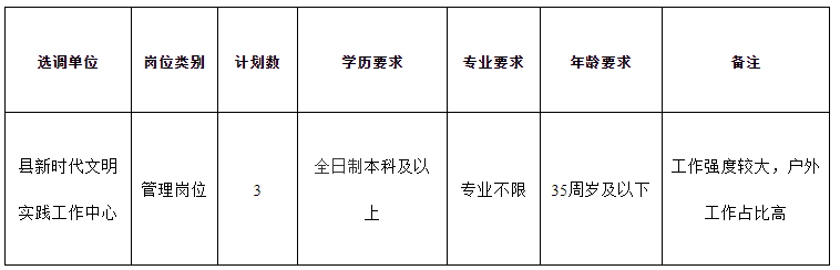庐江县新时代文明实践工作中心公开选调工作人员公告 因工作需要,经研究同意,庐江县新时代文明实践工作中心面向全县公开选调事业编制工作人员,现就选调工作有关事项公告如下: 一、选调计划 共3名,具体选调条件及相关要求如下: ![]() 二、选调范围 选调对象为全县财政全供事业单位在编在聘人员(教育系统所属学校教师、卫生系统所属医院职工除外)。 三、选调条件 1.政治立场坚定、政治素质过硬,深刻领悟“两个确立”的决定性意义,增强“四个意识”、坚定“四个自信”、做到“两个维护”; 2.遵纪守法、品行端正、廉洁自律、服从性好,工作能力和工作责任心强,具有良好的职业道德; 3.进入我县事业单位工作满2年(即与我县事业单位签订的《事业单位聘用合同》聘用起始时间在2023年12月4日以前); 4.近3年年度考核(含试用期满考核)须达到合格及以上档次(2022—2024年,时间不足3年的按实际年限计算); 5.符合选调岗位要求的学历等条件; 6.符合岗位要求的其他条件。 岗位表中年龄“35周岁及以下”是指“1989年12月4日及以后出生”(以有效居民身份证为准,其他涉及年龄计算的依此类推)。 具有下列情形之一的,不得报考: 1.不符合选调条件的; 2.涉嫌违纪违法正在接受审查尚未作出结论的; 3.受到诫勉、组织处理或者党纪政务处分等影响期未满或者期满影响使用的; 4.存在违规不在岗情形的; 5.被依法列为失信联合惩戒对象的; 6.不符合参加事业单位选调的其他情形。 四、选调程序 公开选调工作按照现场报名及资格审查、考试、考察、公示及调动的程序进行。 (一)现场报名及资格审查 1.报名时间:2025年12月4日-5日、8日-9日(工作日上午8:00-11:30,下午2:30-5:30),逾期报名视为无效。 2.报名地点:庐江县政府主楼4楼414室(庐江县新时代文明实践工作中心)。 3.报名所需材料: (1)填写好的《县新时代文明实践工作中心选调报名表》(附件1)一份; (2)本人有效居民身份证原件及正反面复印件一份; (3)毕业证书原件及复印件一份; (4)填写并经签字盖章的《同意报考介绍信》(附件2)一份; (5)岗位所需的其他证件、材料原件及复印件一份; (6)近期1寸免冠照片1张。 4.资格审查:经审查,实际通过资格审查人数与选调计划数须达到N+1的比例(N为选调计划数),未达到的,则取消或相应核减选调计划数。 与选调单位负责同志有夫妻关系、直系血亲关系、三代以内旁系血亲关系或者近姻亲关系等亲属关系的,不得应聘事业单位的组织(人事)、纪检监察、审计财务岗位;与现有在岗人员存在上述关系的,不得应聘到岗后形成直接上下级领导关系的管理类岗位,以及《事业单位人事管理回避规定》明确应当回避的岗位。 (二)考试 本次公开选调考试采用直接面试的方式进行。实际通过资格审查人数超过30人的,则考试采用笔试、面试相结合的方式进行。 1.笔试:笔试采用闭卷考试的方式进行。笔试主要测查报考者的阅读理解能力、贯彻执行能力、解决问题能力、文字表达能力等,分值为100分,时间120分钟。笔试成绩设定最低合格分数线50分。考生须达到最低合格分数线方可进入下一环节。 2.面试:进行笔试的,根据选调计划数,依据笔试成绩从高分到低分的顺序按1:3的比例确定面试入围人选,不足规定比例的按实际人数确定(笔试成绩须在最低合格分数线内),入围人选最后一名如有多名考生笔试成绩相同的,一并确定为面试人选。直接面试的,通过资格审查人员即为面试入围人选。 面试采用结构化面试的方式进行,采取百分制,当场评分、当场亮分(面试成绩保留2位小数,小数点后第3位小数四舍五入)。面试设定最低合格分数线60分,未达到最低合格分数线的考生,不予进入下一环节。 笔试、面试具体时间和地点以《笔试准考证》《面试通知书》规定为准。《笔试准考证》《面试通知书》领取时间另行通知,笔试报名费、面试费在领取时现场缴纳(笔试费45元/科、面试费80元/人)。 3.成绩合成:进行笔试的,笔试成绩与面试成绩按4:6比例合成考试总成绩(考试总成绩保留2位小数,小数点后第3位四舍五入);直接面试的,面试成绩即为考试总成绩。 (三)考察 根据岗位选调计划数和考试总成绩,从高分到低分的顺序按1:1的比例确定考察人选。若考试总成绩相同,按面试成绩高的、全日制学历高的、年度考核优秀档次多的顺序依次确定(下同)。 考察工作根据选调岗位的要求,按照德才兼备的标准,采取多种形式,全面了解掌握考察人选在政治思想、道德品质、能力素质、遵纪守法、廉洁自律、岗位匹配和心理健康等方面的表现情况。重点考察被选调人选的工作表现与工作实绩、年度考核、岗位匹配度和工作服从性等方面的情况。同时要核实考察对象是否符合规定的报考资格条件,提供的报考信息和相关材料是否真实、准确,是否具有报考回避的情形等方面的情况。 根据《关于加快推进失信被执行人信用监督、警示和惩戒机制建设的实施意见》(皖办发〔2017〕24号)等文件精神,考察结束时考察对象仍属于失信被执行人的,考察环节不予合格(查询平台:中国执行信息公开网失信被执行人查询专栏(http://zxgk.court.gov.cn/shixin/)。 考察工作由中共庐江县委宣传部(庐江县新时代文明实践工作中心)制定考察方案并组织实施。 (四)公示及调动 1.公示。选调单位将拟选调人选有关材料报县人社局审核后予以公