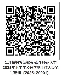 西华师范大学是四川省属重点大学、四川省首批一流学科建设高校、全国博士和硕士学位授予单位,秉承“铸魂励教、陶冶化育”的办学理念和“勤奋、求实、敬业、创新”的校训精神,始终坚持立教报国、育才造士,矢志不渝为民族复兴和地方建设服务;始终坚持铸魂励教、陶冶化育,矢志不渝为基层教育和基础教育服务;始终坚持从严治校、严谨治学、艰苦奋斗、开拓进取,矢志不渝传承和弘扬学校的办学精神;始终坚持同心同德、共谋发展、与时俱进、争创一流、矢志不渝擘画和推进强校事业。目前已发展成为一所学科门类齐全、师资力量雄厚、教学科研成果丰硕、教师教育特色鲜明、社会声誉优良的综合性师范大学,是四川省重要的基础教育教师培养基地、在职教师培训基地、教师专业发展研修基地、高等教育和基础教育研究基地。学校情况详见西华师范大学网站https://www.cwnu.edu.cn/。 二、选调对象、范围及基本条件 (一)选调对象和范围 川渝两地各级党政群机关公务员、参照公务员法管理人员;川渝两地各级各类型事业单位在编在岗人员;中央在川渝两地单位(包括垂直管理单位、派出单位等)在编在岗机关事业单位人员。 (二)选调条件 1.具备的基本条件: ①政治立场坚定,政治素质过硬,道德品行良好。 ②近2年年度考核均为称职(合格)及以上等次,并符合《四川省事业单位工作人员流(调)动试行办法》等有关规定。 ③具有较强的政策理论水平、专业素养和业务能力。 ④身心健康,具有正常履行职责的身体条件和心理素质。 ⑤符合法律、法规规定和职位要求的其他资格条件。 ⑥具备本公告具体选调岗位要求的条件和资格(详见《岗位和条件要求一览表》)。 2.不得报考情形: ①通过公开招聘试用期未满的,以及不约定试用期或试用期满但在原单位工作不满1年的。 ②尚在国家、四川省或重庆市规定最低服务年限内的。 ③因涉及工作秘密、工作延续性等不宜流(调)动的。 ④人事档案中身份、年龄、工龄、党龄、学历、经历等存疑尚未查清的。 ⑤涉嫌违纪违法正在接受有关部门审查调查尚未作出结论的,以及受到诫勉、组织处理或者党纪政务处分等影响期未满或期满影响使用的。 ⑥按照中共中央组织部、人力资源社会保障部《事业单位人事管理回避规定》应当回避的。 ⑦不符合相关政策规定的其他情形。 选调公告中涉及的时间节点,除公告中有明确规定外,均以公告报名最后一天为截止时间。 三、选调名额 共计选调8名。 具体岗位和条件见《岗位和条件要求一览表》。符合条件人员均可报考,涉及不同岗位类别的选调后按规定聘用。 四、报名 本次选调实行网络报名,报名网站为(http://rscg.cwnu.edu.cn/,下同),报名时间为:2025年12月12日9:00至12月17日18:00。报名按以下程序进行: (一)网上报名 (1)填报信息。报考人员登录报名网站,查阅公告,了解基本政策和要求,选择与自己条件相符的选调岗位,使用有效居民身份证有关信息进行报名,如实、准确、完整填写《报考信息表》,并对填写信息真实性完全负责。每人限报1个岗位。 (2)上传照片。按网络提示上传照片。报名照片将用于准考证、考场座次表等。 (二)资格初审 报考人员请在2025年12月15日9∶00至12月17日18∶00期间,登录报名网站查询是否通过资格初审(如对资格初审结果有异议,可咨询选调单位或主管部门)。如因条件不符或信息填报错误而未通过审核的,可于报名时间截止前改报其他符合条件的职位。资格初审通过后,不得更改报考单位及岗位。 (三)网上缴费 资格初审合格后,报考人员应于2025年12月19日18:00前完成网上缴费(按照四川省发展和改革委员会、四川省财政厅《关于全省人力资源社会保障部门行政事业性收费的通知》川发改价格规〔2023〕473号规定笔试1科缴费50元,共50元),资格审查通过的人员扫描下方二维码缴费。未在规定时间缴费的,视为自动放弃。缴费成功后,非政策性因素,不予退费。 ![]() (四)岗位调整 实际报名人数与拟选调岗位选调人数之比未达到本公告规定的笔试开考比例的,由本单位调减该岗位选调名额或取消该选调岗位,调减选调名额后,该岗位报考人数与调减后的选调名额之比应达到该岗位规定的开考比例。 调减或取消的情况,由本单位12月23日16:00前在选调公告发布网站向社会公布。 取消岗位的,所缴费用按照原支付路径退回。 (五)打印报名表、准考证 报名资格初审合格并缴费成功的报考人员,应于2025年12月25日9:00至12月27日18:00登录报名网站打印本人准考证(确保字迹、照片清晰)。 考试当天,报考人员须持本人准考证和有效身份证件(过期身份证、身份证复印件不得作为参考证件)按准考证指定的时间和考场参加考试。逾期未打印准考证以及相关证件不符合规定要求而影响考试的,责任由报考人员自负。 (六)提醒 资格审查工作由我单位负责,贯穿选调全过程。网络报名成功不代表报考人员最终资格审查合格。在任何时候、任何环节发现报考人员有不符合报考资格条件、弄虚作假、违反回避制度等,取消考试、选调资格,所产生的后果由报考人员承担。报名时符合资格条件,报名后由于工作单位或者职务发生变化等原因,导致报名人员新产生不符合报考资格条件情形的,终止其选调程序。报考者最终是否符合所报岗位条件要求须经面试资格审查、考察复核